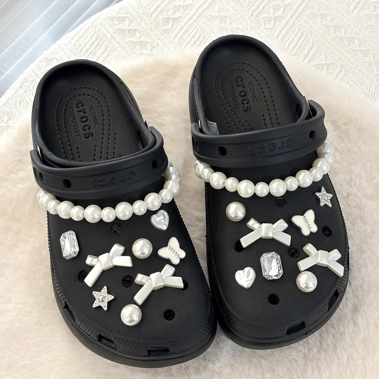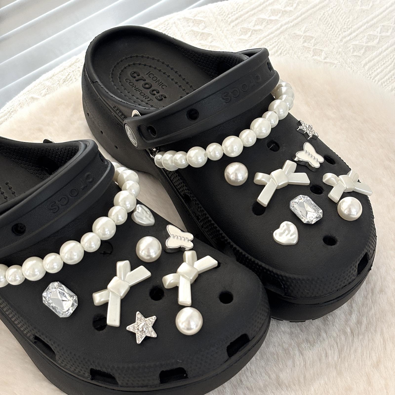 Acessórios para calçados Crocs DIY Acessórios removíveis Sapato de uma peça Flor Pérola Laço Contas Corrente Fivela Atacado