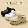 Chinelos femininos de verão com fundo grosso e furos 2025 novos chinelos Baotou de EVA com fundo grosso antiderrapantes e sem cheiro, resistentes ao desgaste