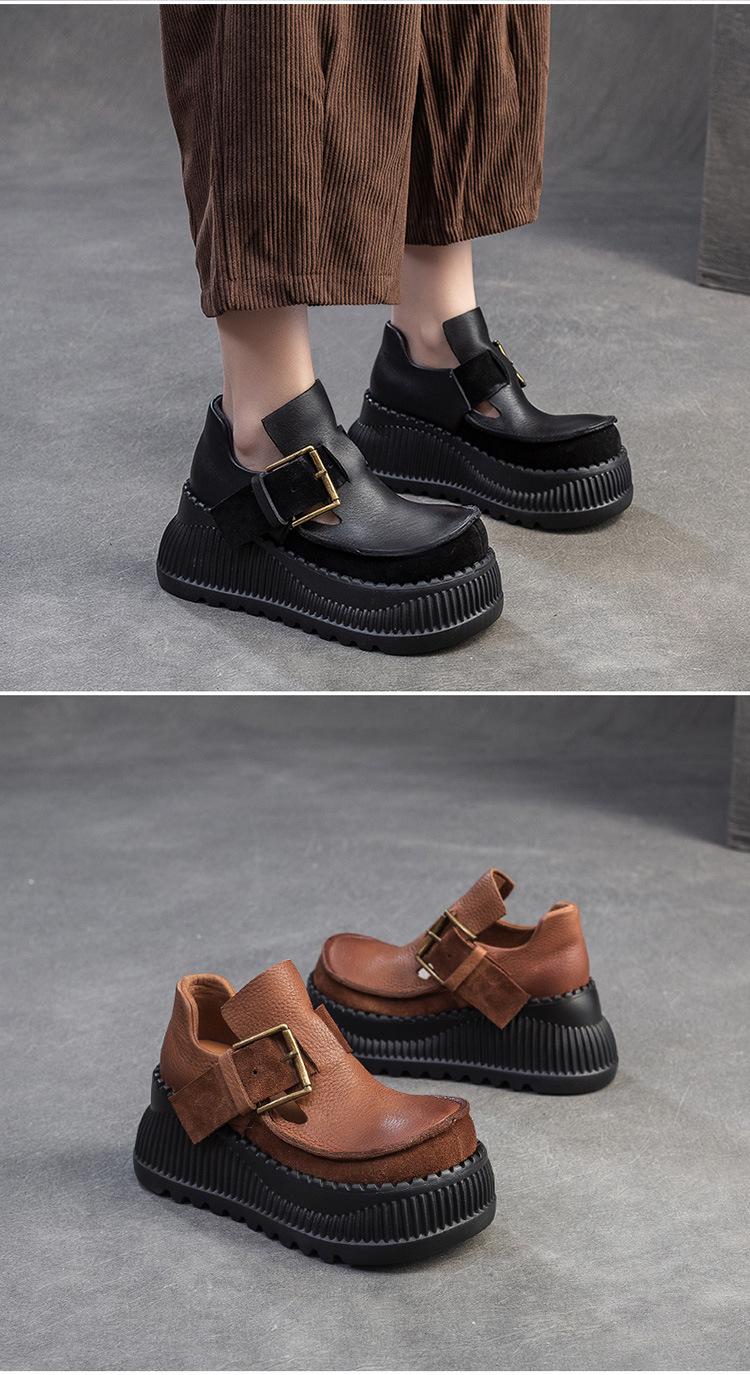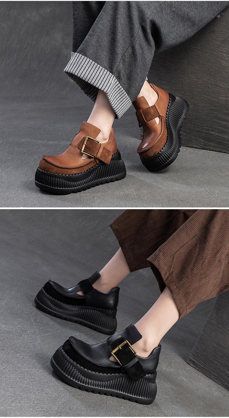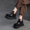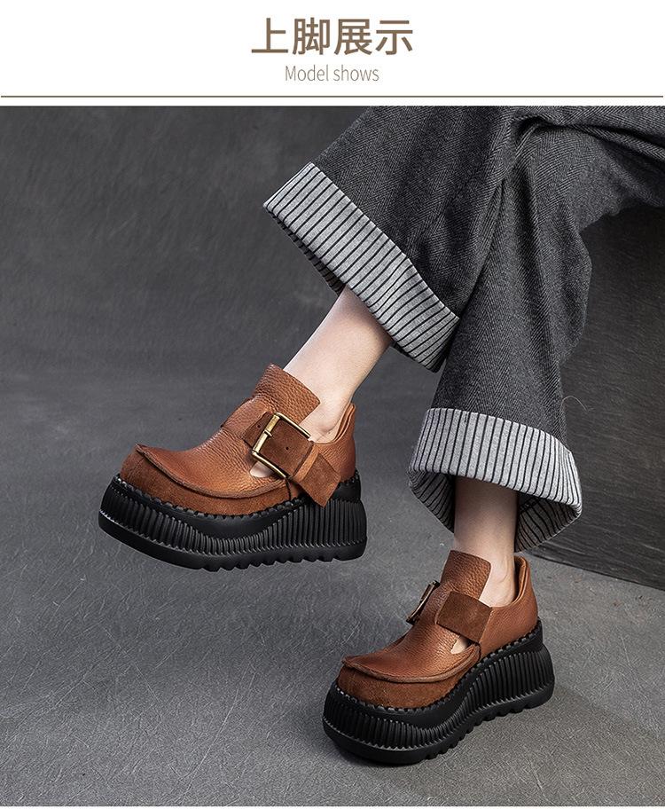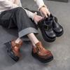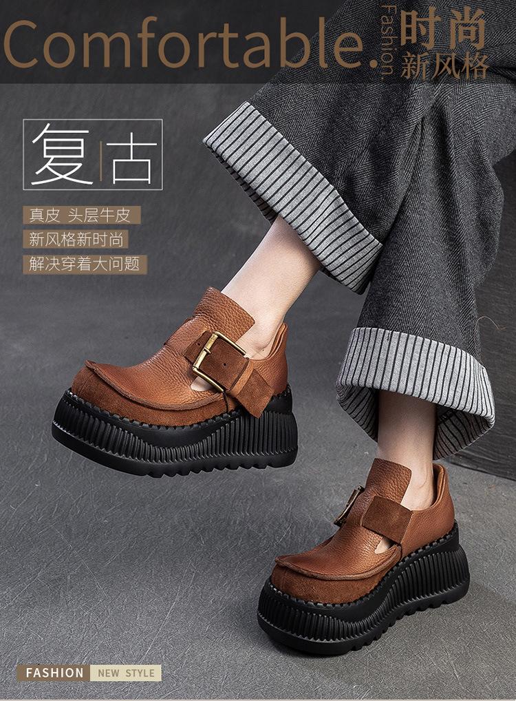 Shanghai Jie Jie 2025 primavera e verão novo nicho plataforma de alta qualidade bolo salto frito sapatos de rua aumentou vintage estilo europeu e americano sapatos femininos