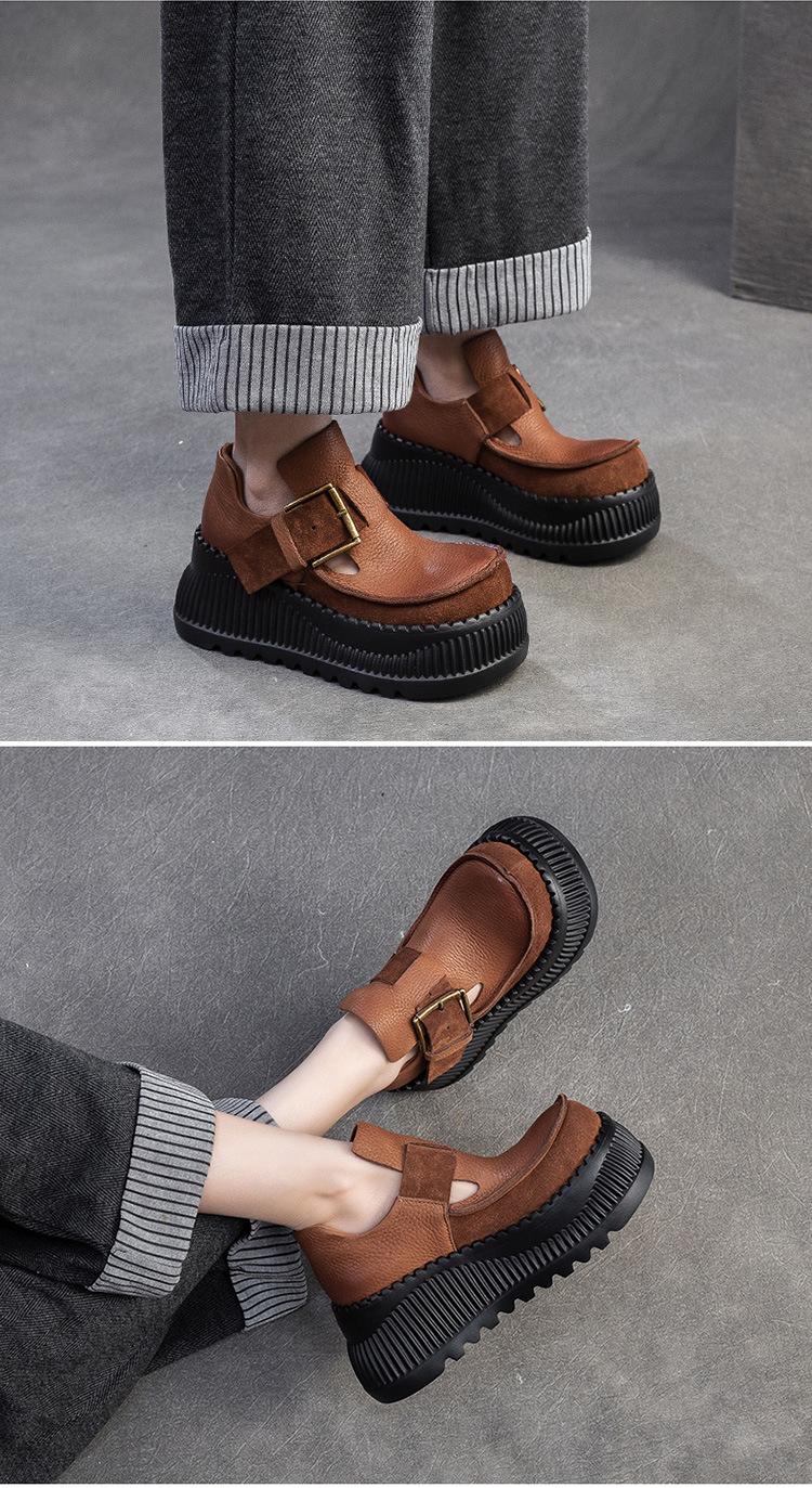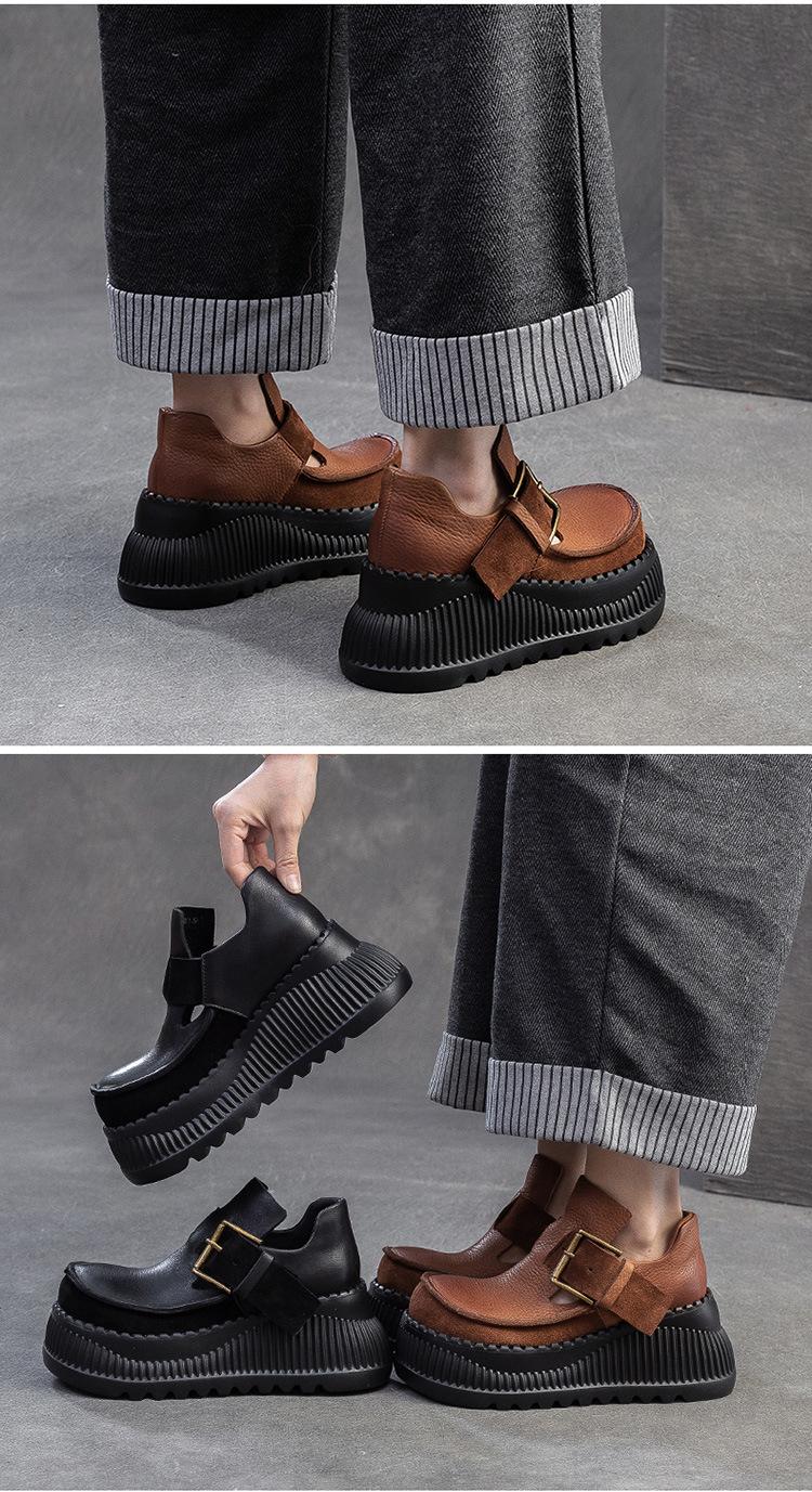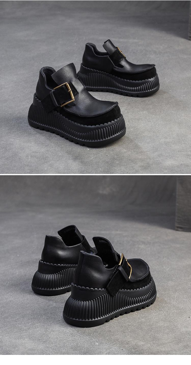 Shanghai Jie Jie 2025 primavera e verão novo nicho plataforma de alta qualidade bolo salto frito sapatos de rua aumentou vintage estilo europeu e americano sapatos femininos