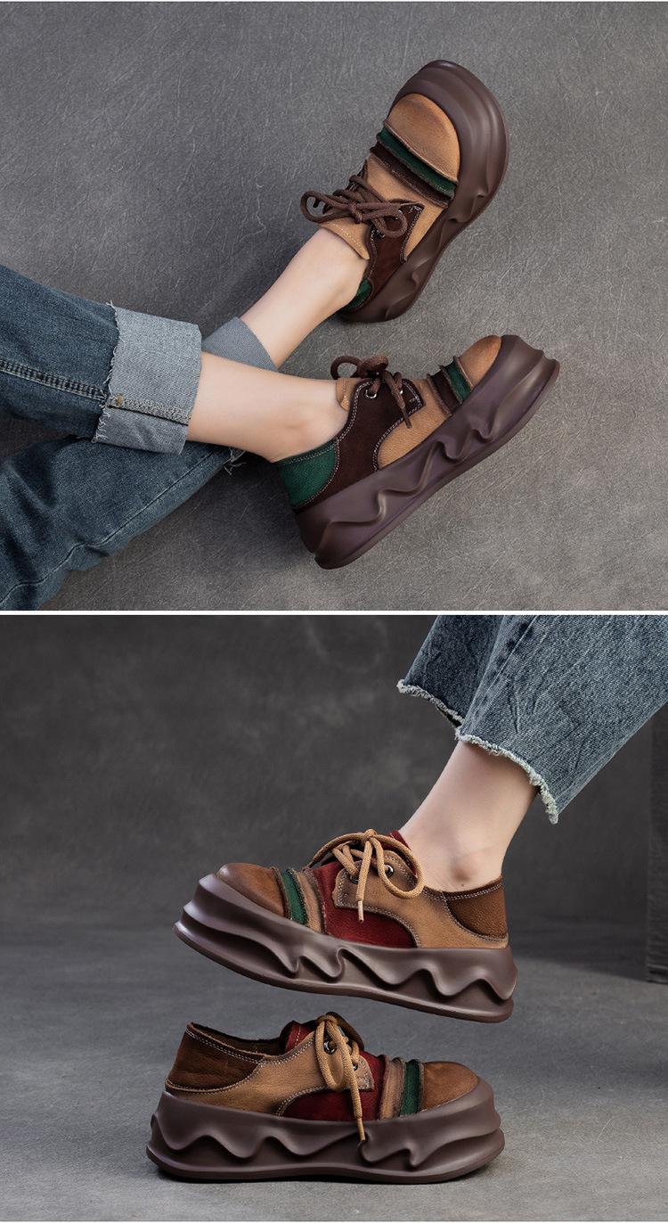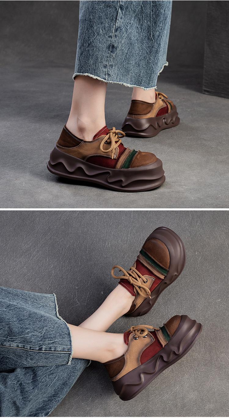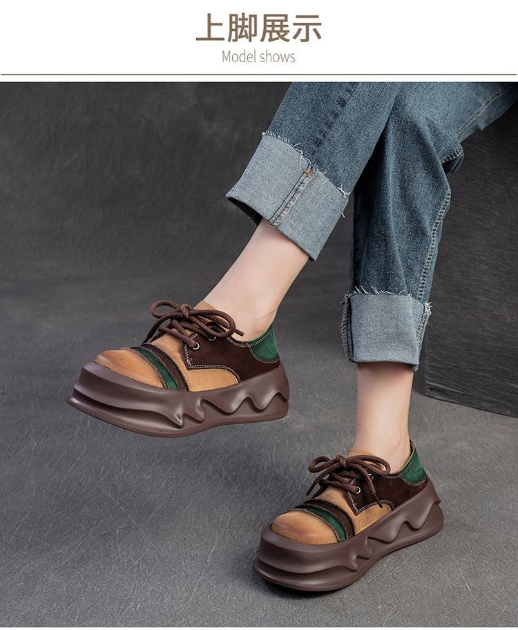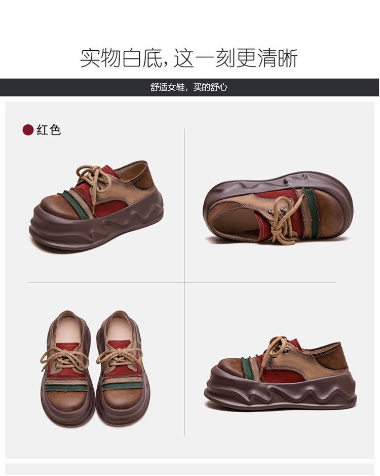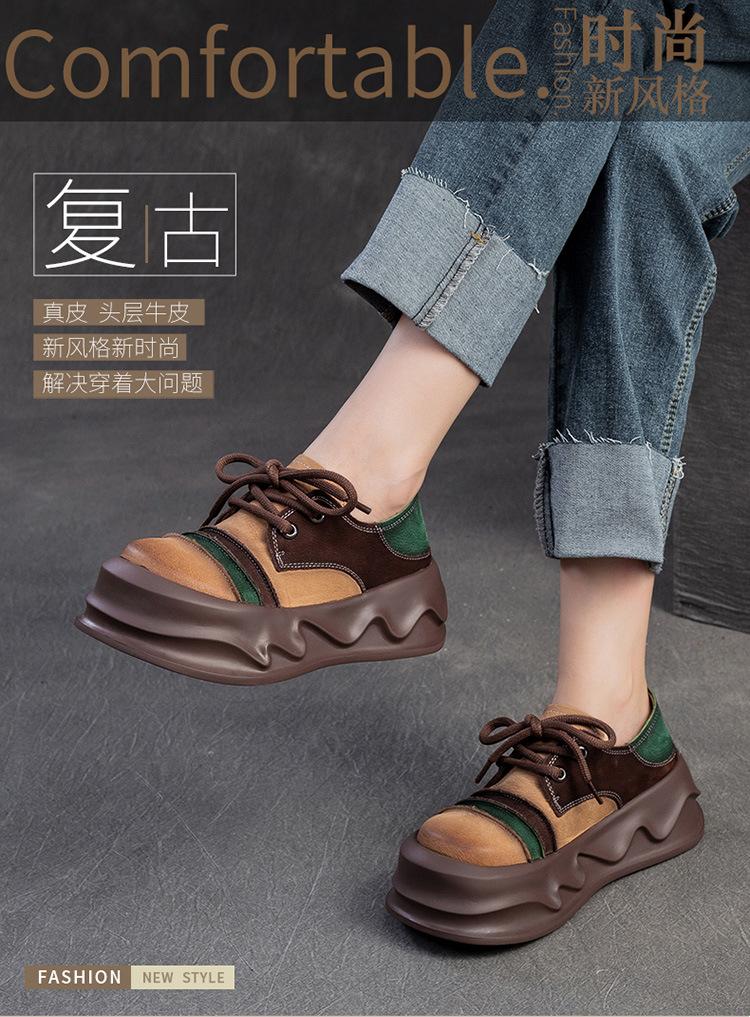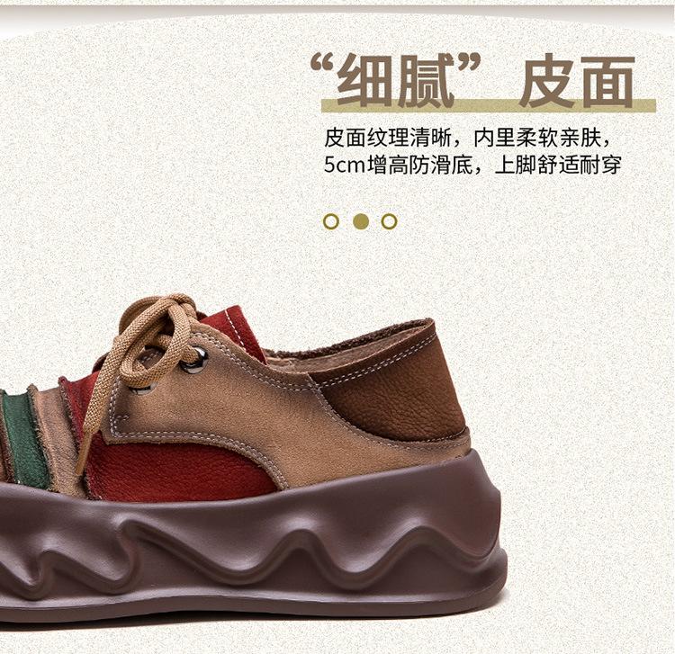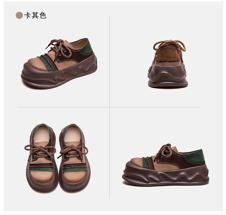 Shanghai Jiejie 2024 Outono Nova Moda Retro Leve Confortável Camada Única Couro de Vaca Cor Combinando Sapatos Femininos