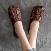 Shanghai Jiejie 2024 Primavera Novas Sandálias de Couro de Vaca de Primeira Camada Confortáveis Casuais Respiráveis Sapatos de Camada Única Combinam com Todos os Sapatos Femininos
