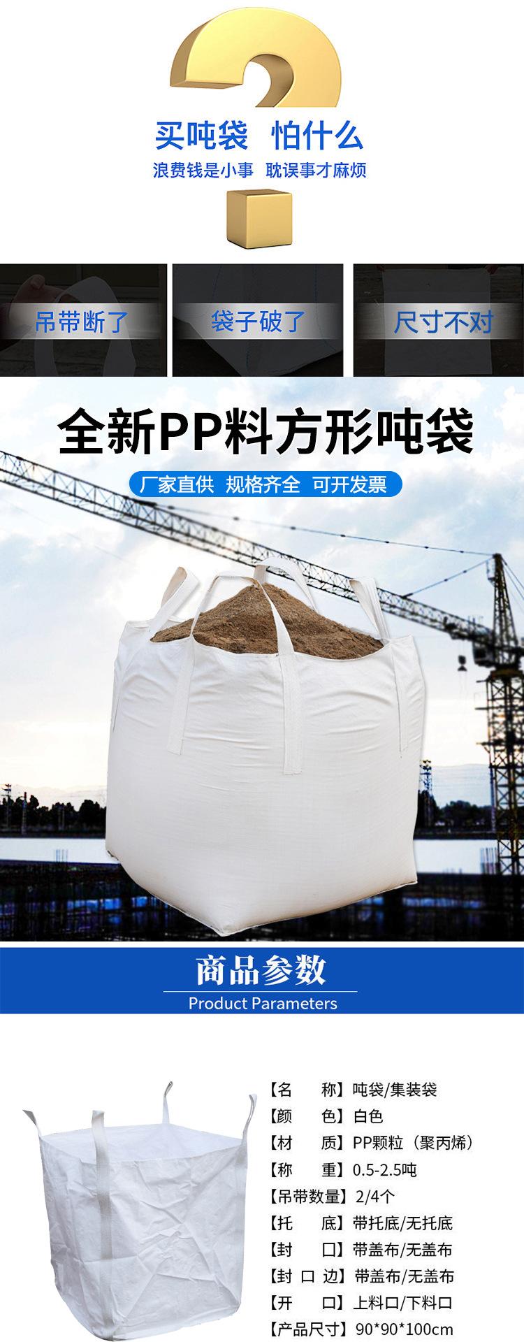 Novo saco de tonelada branca 1,5 toneladas quatro anéis ponte pré-carregamento espaço recipiente saco 2 toneladas levantamento plástico tecido saco de tonelada