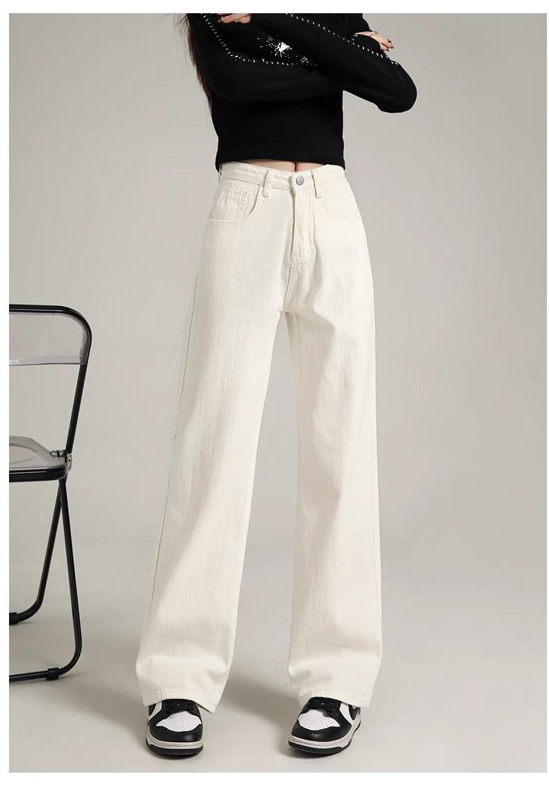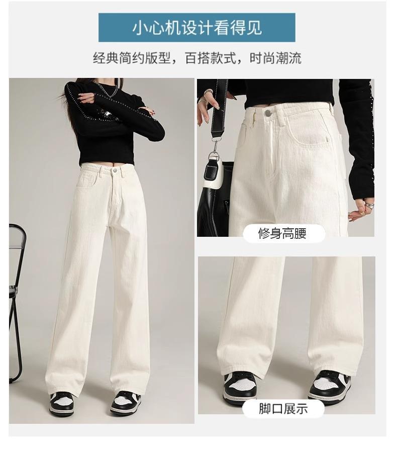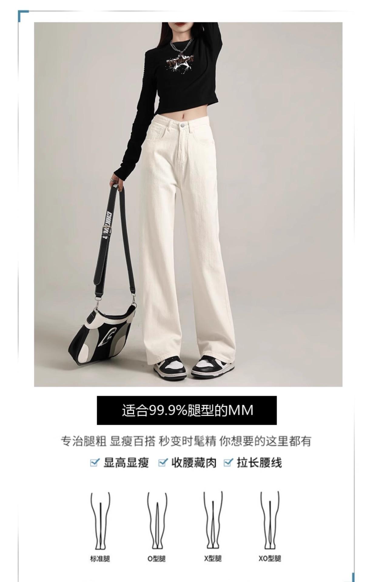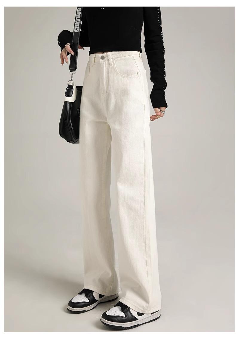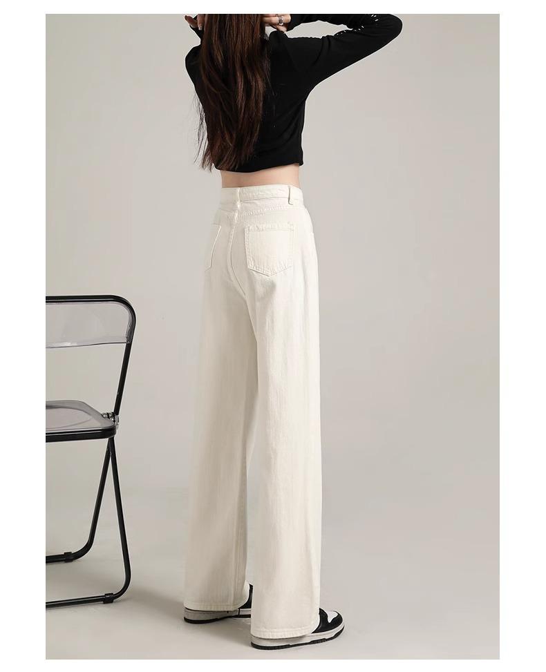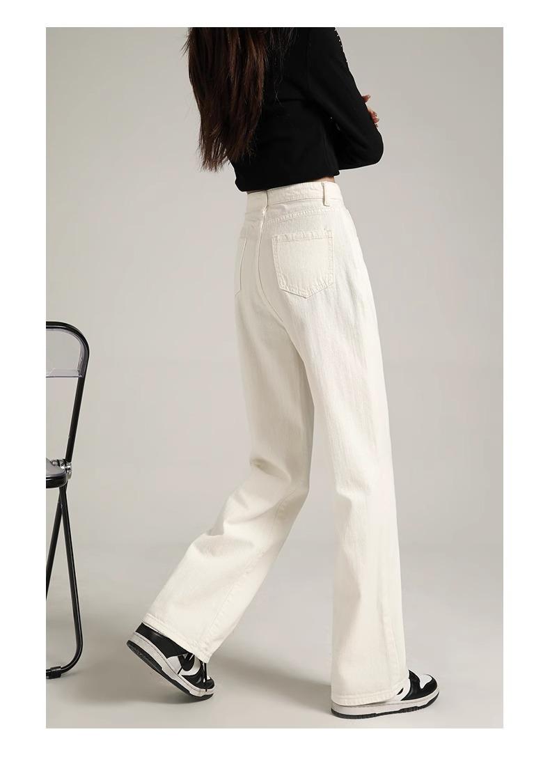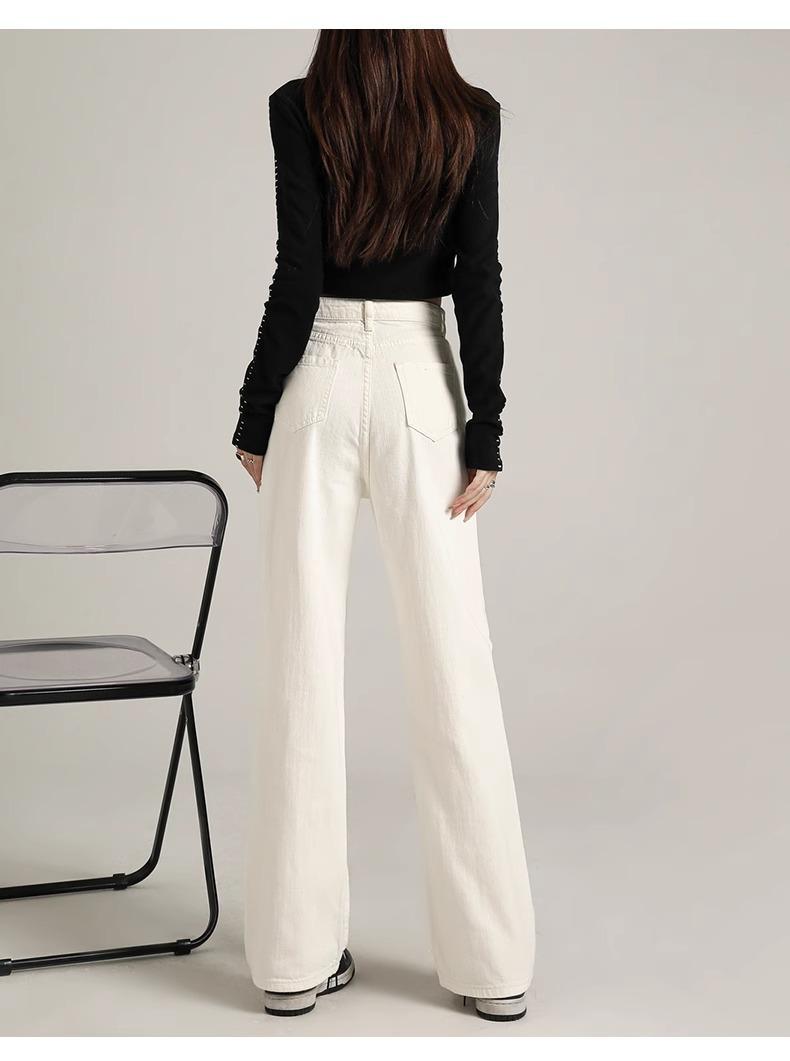Calça Jeans Branca Estreita Perna Larga Feminina Verão 2024 Nova Cintura Alta Calça Reta Fictícia