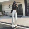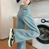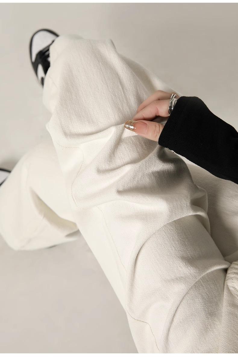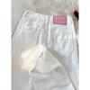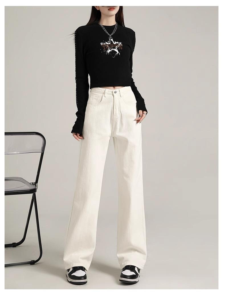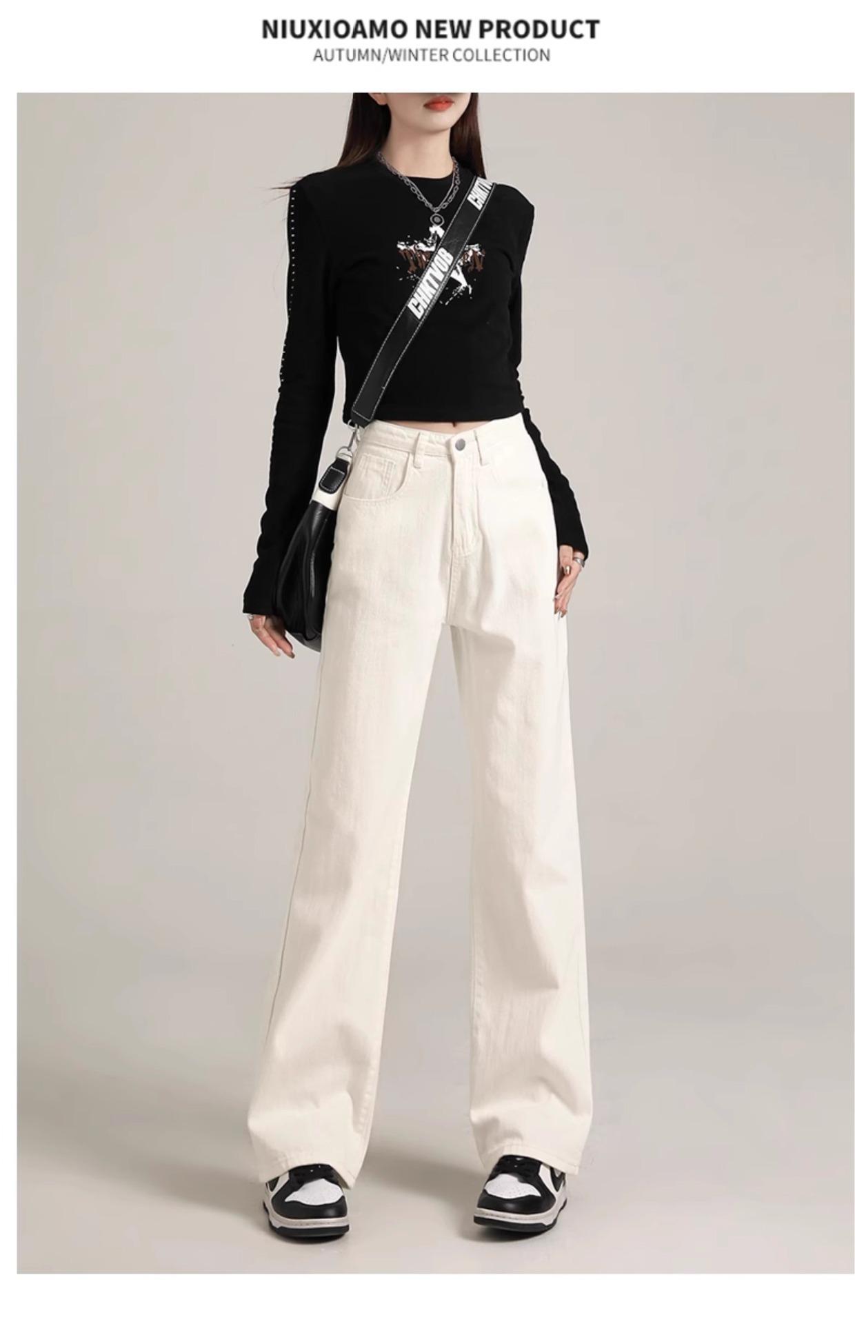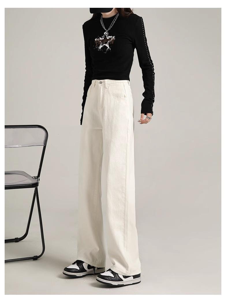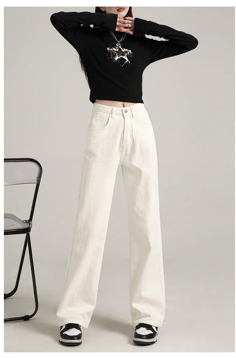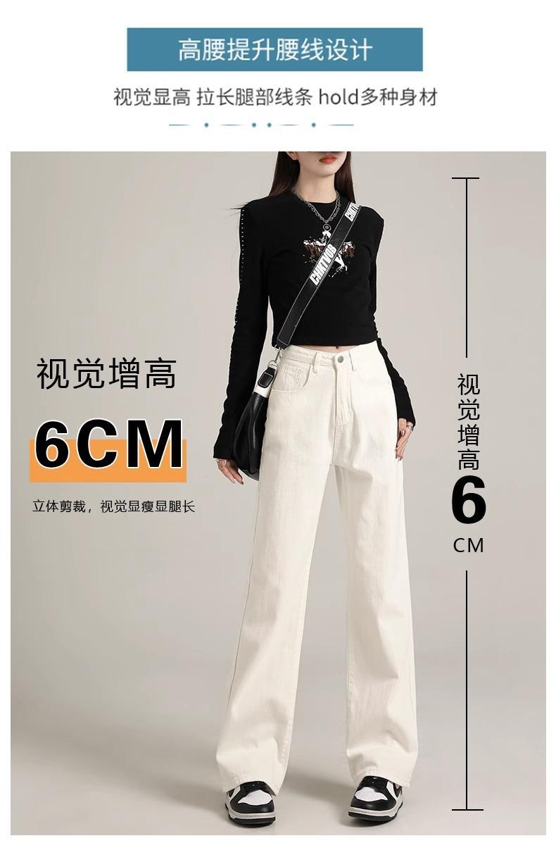 Calça Jeans Branca Estreita Perna Larga Feminina Verão 2024 Nova Cintura Alta Calça Reta Fictícia