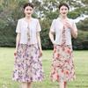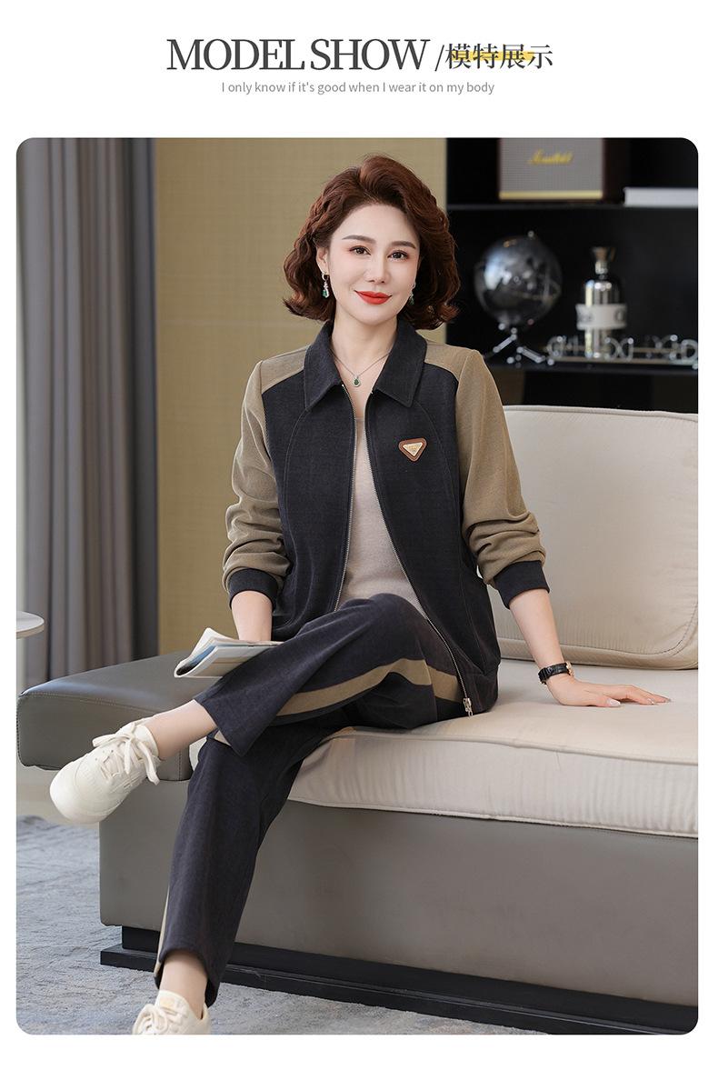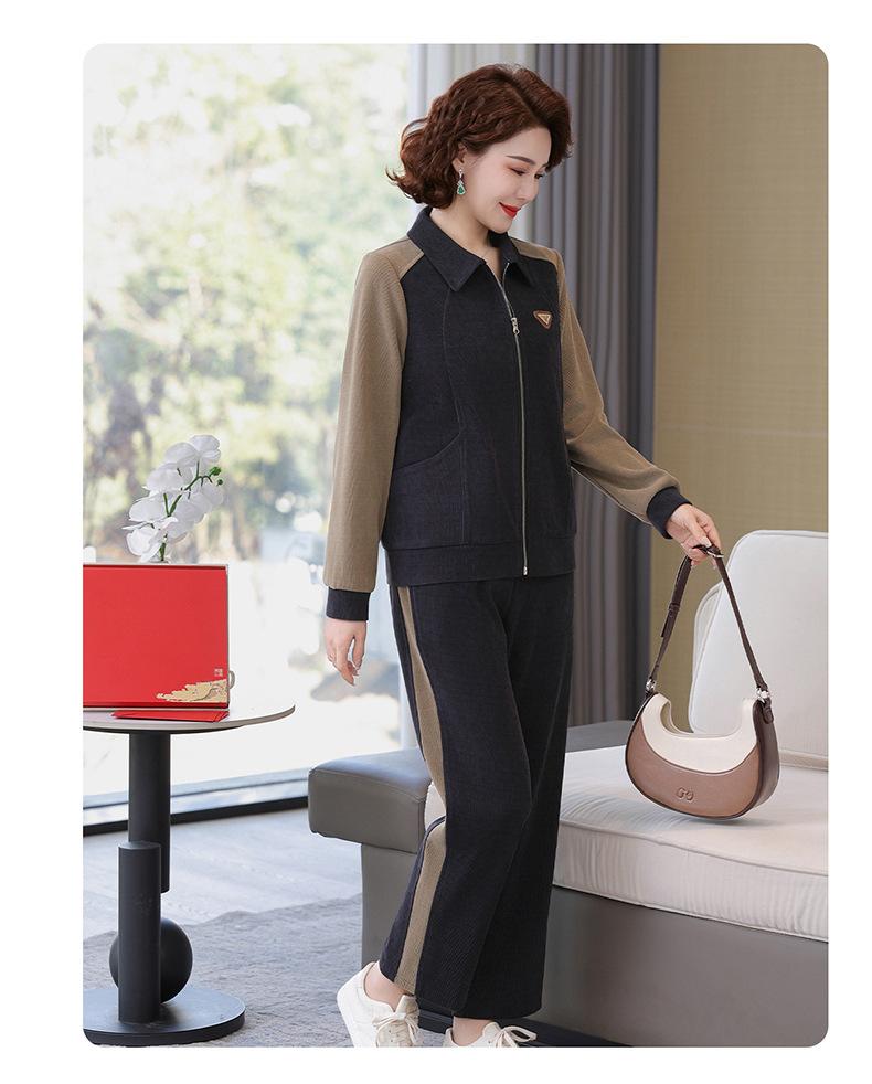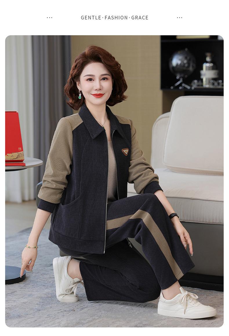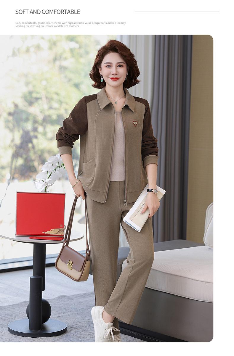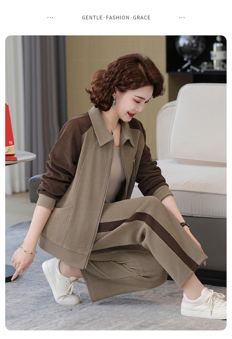 Mães de meia-idade e idosas vestem moda estilo ocidental casaco redutor de idade terno esportivo casual feminino primavera e outono 40 anos 50 conjunto de duas peças