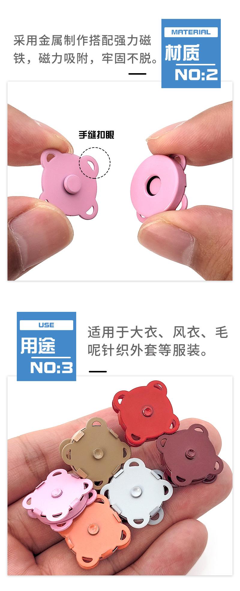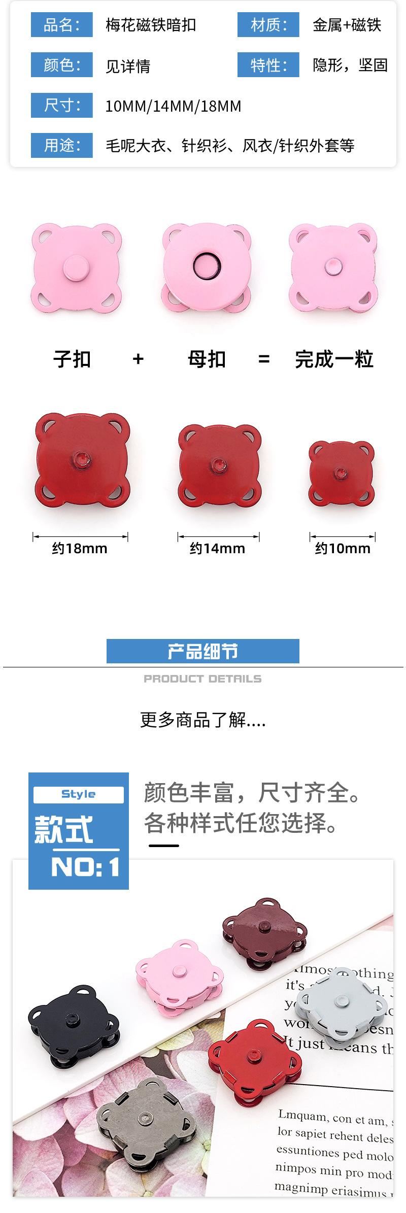 Fivela magnética de flor de ameixa colorida fivela oculta bolsa de roupas botão de pressão magnético fivela mãe invisível botão magnético de costura à mão faça você mesmo