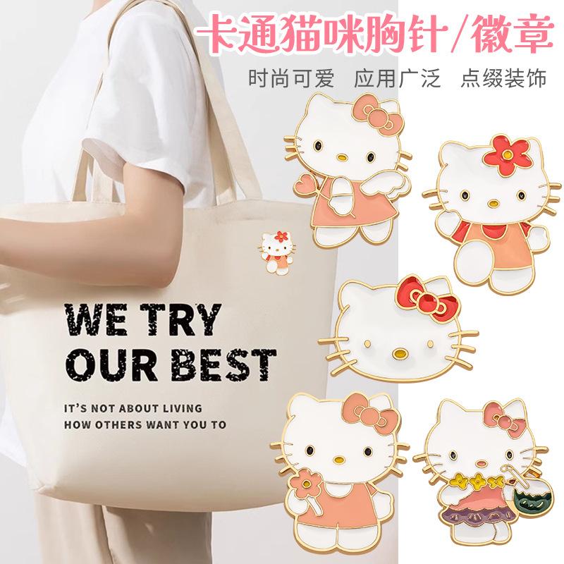 Distintivo de metal de desenho animado com broche de gato, pingente de fantasia de lona para estudantes, alfinete decorativo fofo e versátil