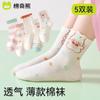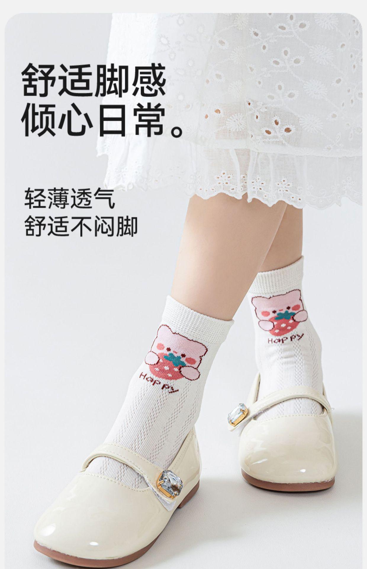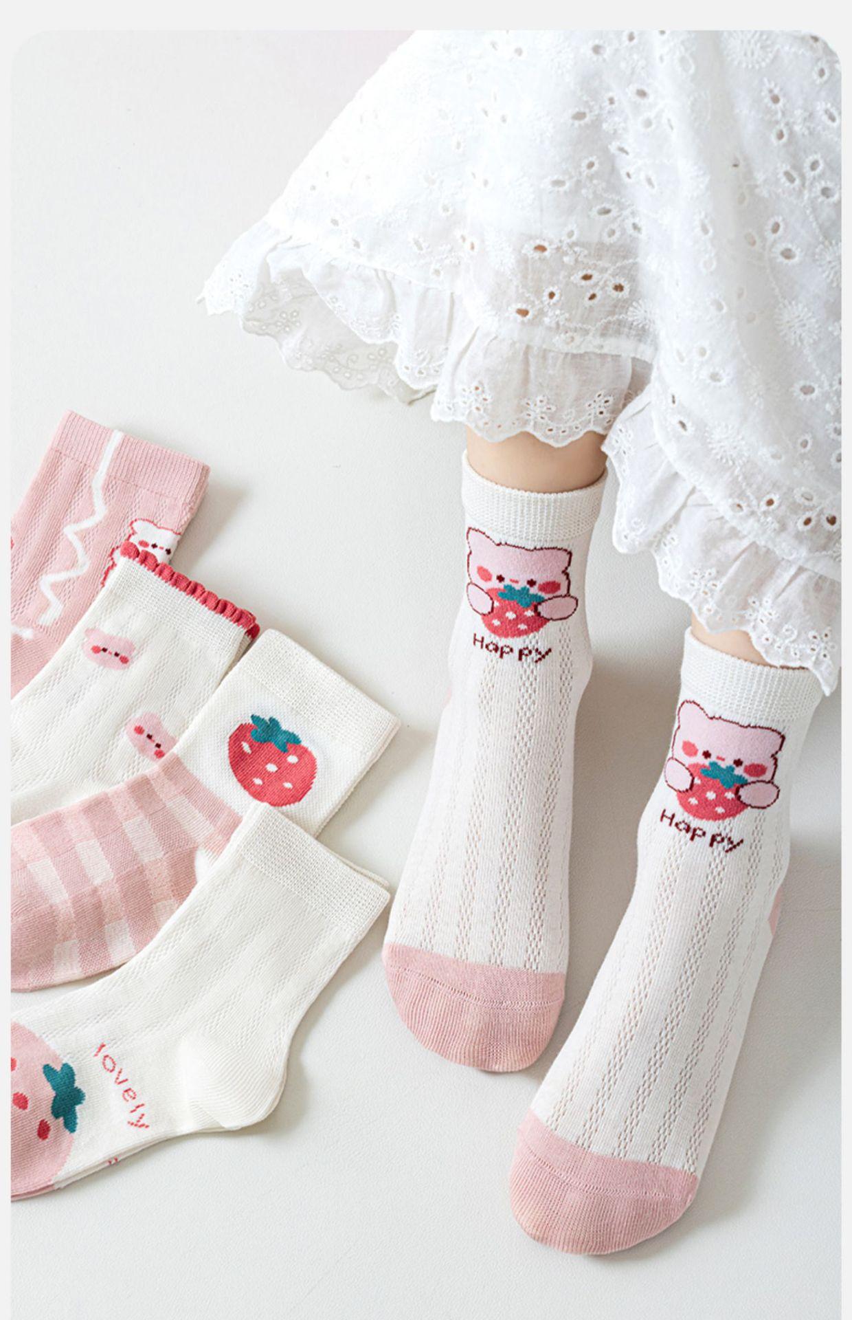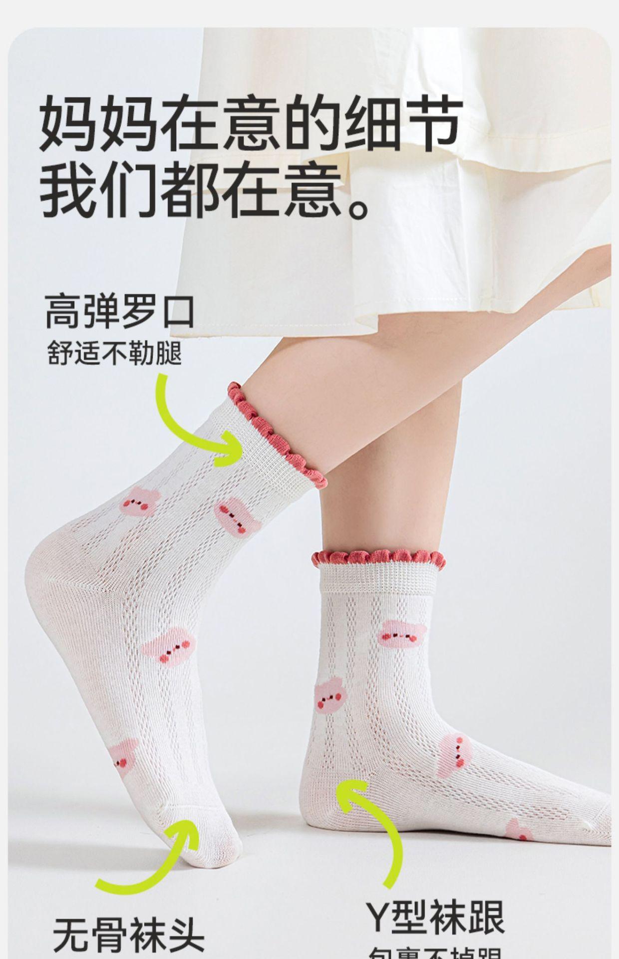 Meias para meninas Meias infantis de malha fina respirável primavera e verão Meias de algodão para meninas Desenho animado sem osso Meias de cano médio Meias infantis para bebês