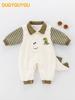 Macacão de bebê roupas de primavera para meninos e bebês costura verde desenho animado listrado dinossauro dupla camada classe a primavera e outono escalada terno