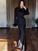 Verão 2025 novo comércio exterior europeu e americano decoração pena de cavalo textura de seda top saia rabo de peixe varredura duas peças