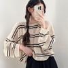 Pulôver feminino primavera e outono novo estilo coreano cor combinando solto listrado manga comprida camada de base suéter malha oca blusa fina