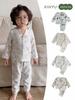 Conjunto de Roupa de Casa Infantil de Primavera e Outono Classe a Algodão de Bambu Dupla Camada Meninos e Meninas Gaze Roupa de Ar Condicionado Pijama Bonito para Bebê