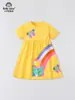Animal bordado lapela menina vestido 2025 verão novo algodão impresso bonito bebê vic vestido princesa vestido