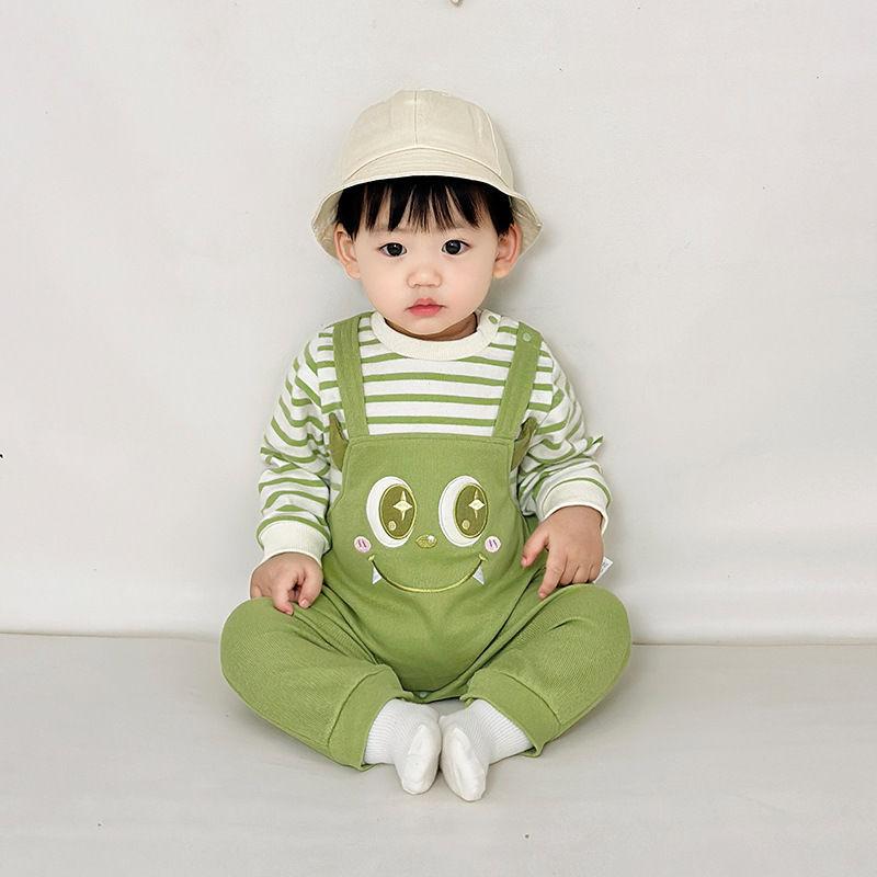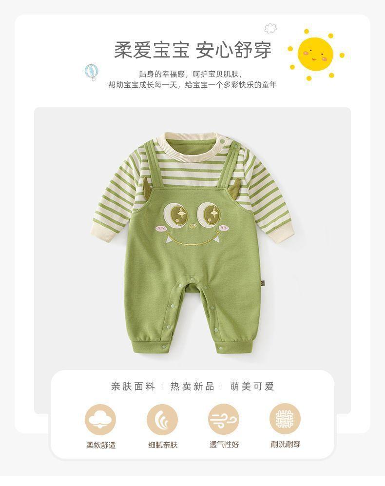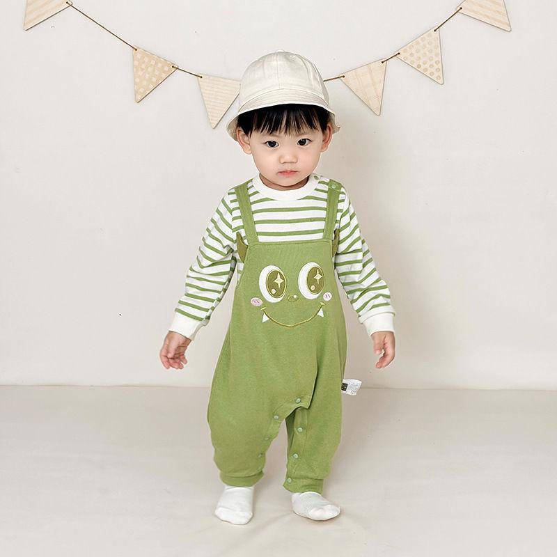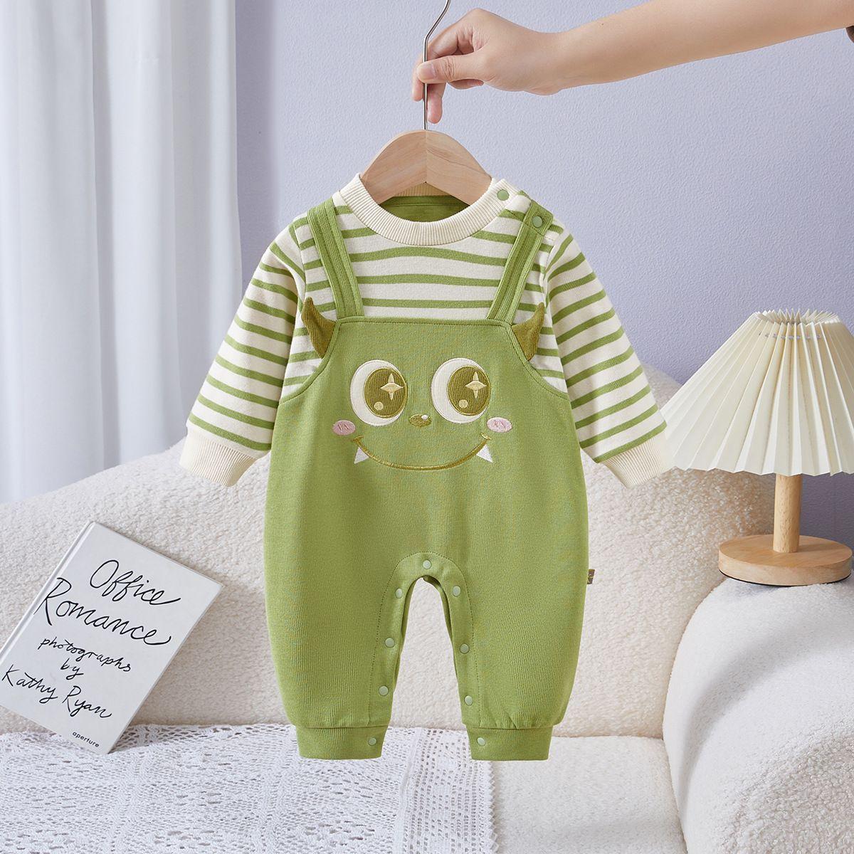 Roupas de uma peça para bebê primavera e outono fino menino desenho animado super fofo internet popular manga comprida recém-nascido falso terno de escalada de duas peças