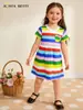 26 Vestidos de Verão para Meninas Estilo Europeu e Americano Moda Estampa Arco-Íris Vestido Princesa Fornecimento Transfronteiriço Vestido Infantil de Algodão