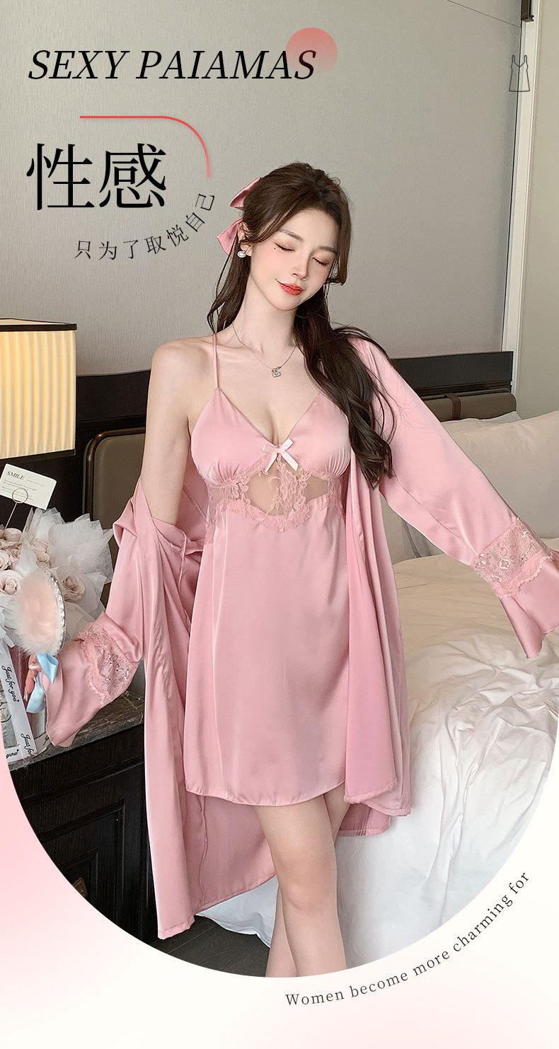 Pijama sexy com almofada no peito feminino verão 2025 cetim novo estilo fino renda sling camisola alta qualidade senso casa roupas