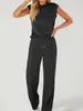 Feminino Europeu e Americano Transfronteiriço 2024 Nova Moda Cor Sólida terno Colete Calças Colagem Costura Casual Conjunto de Duas Peças para Mulheres