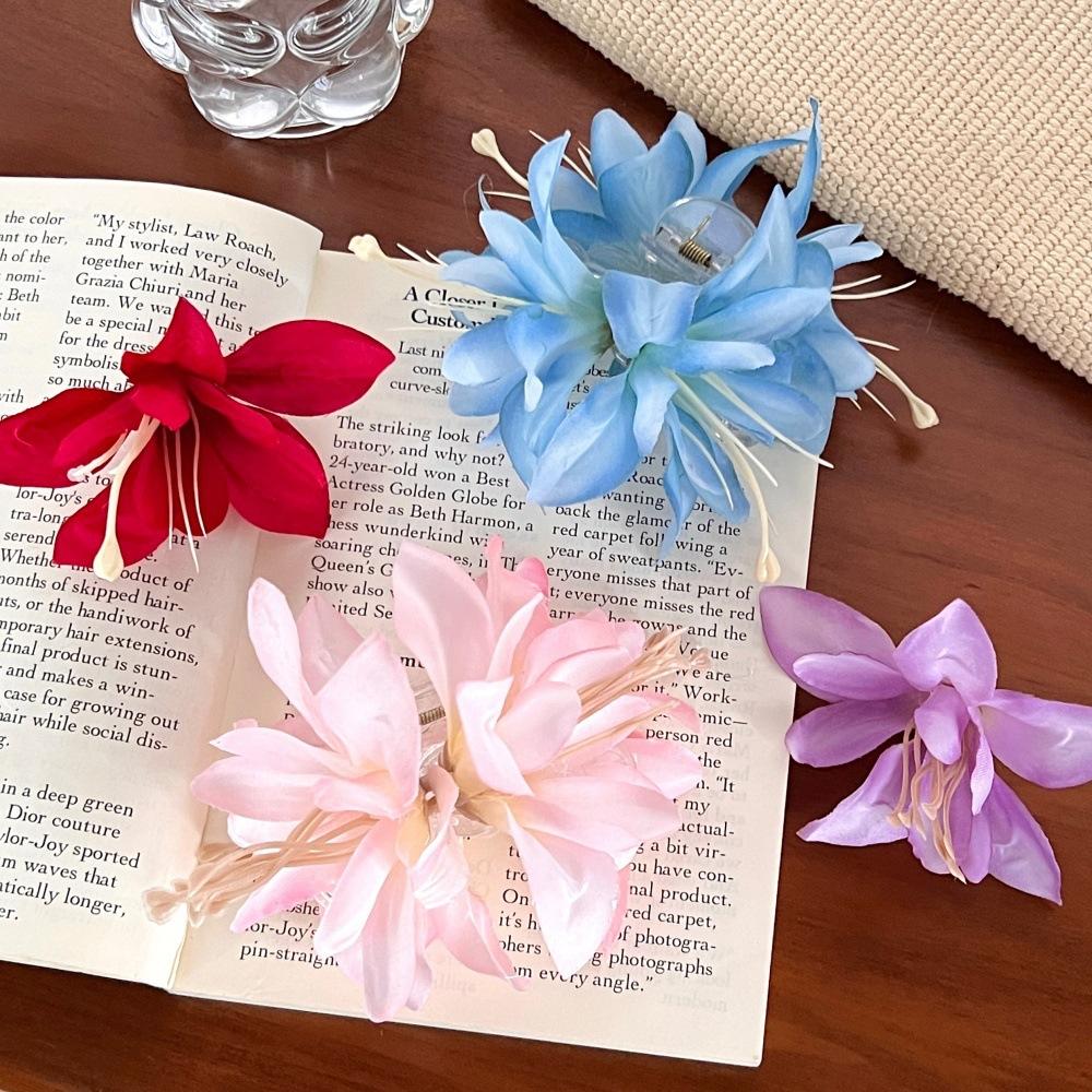 1#Pink lily flower hairpin, 2#Red lily flower hairpin, 3#Blue lily flower hairpin, 4#Purple lily flower hairpi...