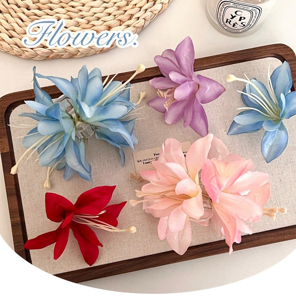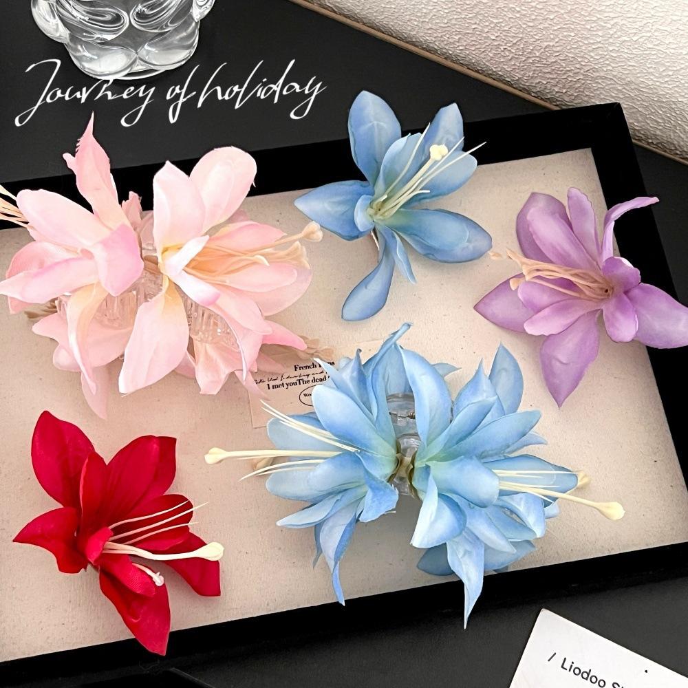 Grampo de cabelo de flor de lírio de super fada de simulação, acessórios para cabelo, disco de cabeça avançada, grampo de cabelo, grampo de tubarão, grampo de franja Atmosphere Sense