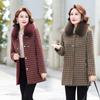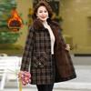 Casaco de veludo de vison estilo ocidental de inverno para mães, casaco de lã xadrez feminino de meia-idade e idosos, forrado de lã, casaco curto de algodão espesso