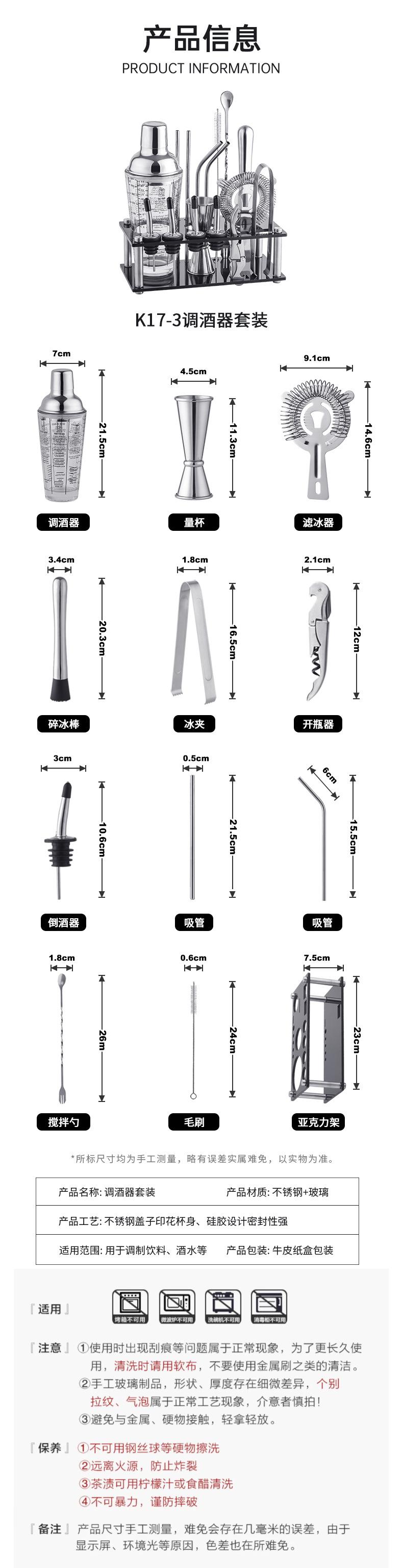 Shaker measuring cup filter ice crushing stick, etc.