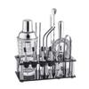 Cross-border em estoque atacado acrílico rack Shaker bar coquetel ferramentas conjunto completo aço inoxidável shaker terno