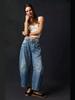 2024 Novas calças femininas casuais de perna larga e larga da moda europeia e americana transfronteiriça, calças jeans lavadas de cintura média e baixa P096
