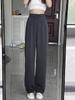 Calças de Fato Casual Plus-Size para Mulheres Baixinhas, Cintura Elástica, Calças de Perna Larga, Primavera e Verão Cintura Alta, Caimento Fluido, Comprimento até o Chão, Calças de Perna Reta com Botão Único