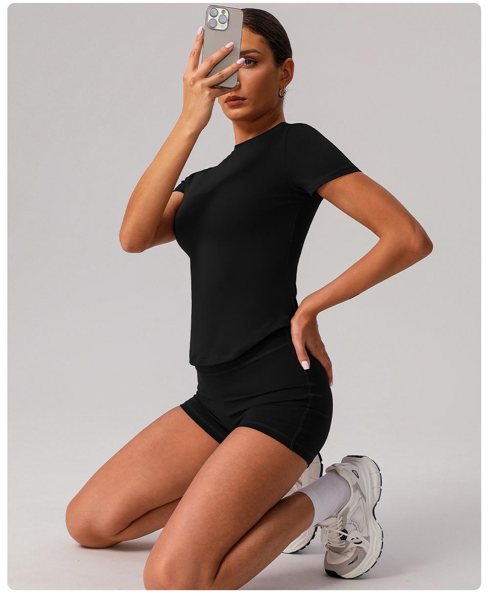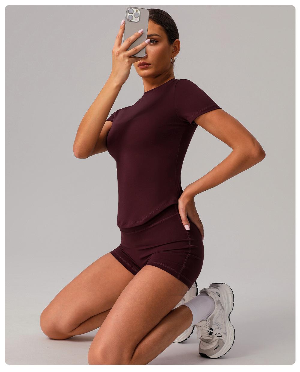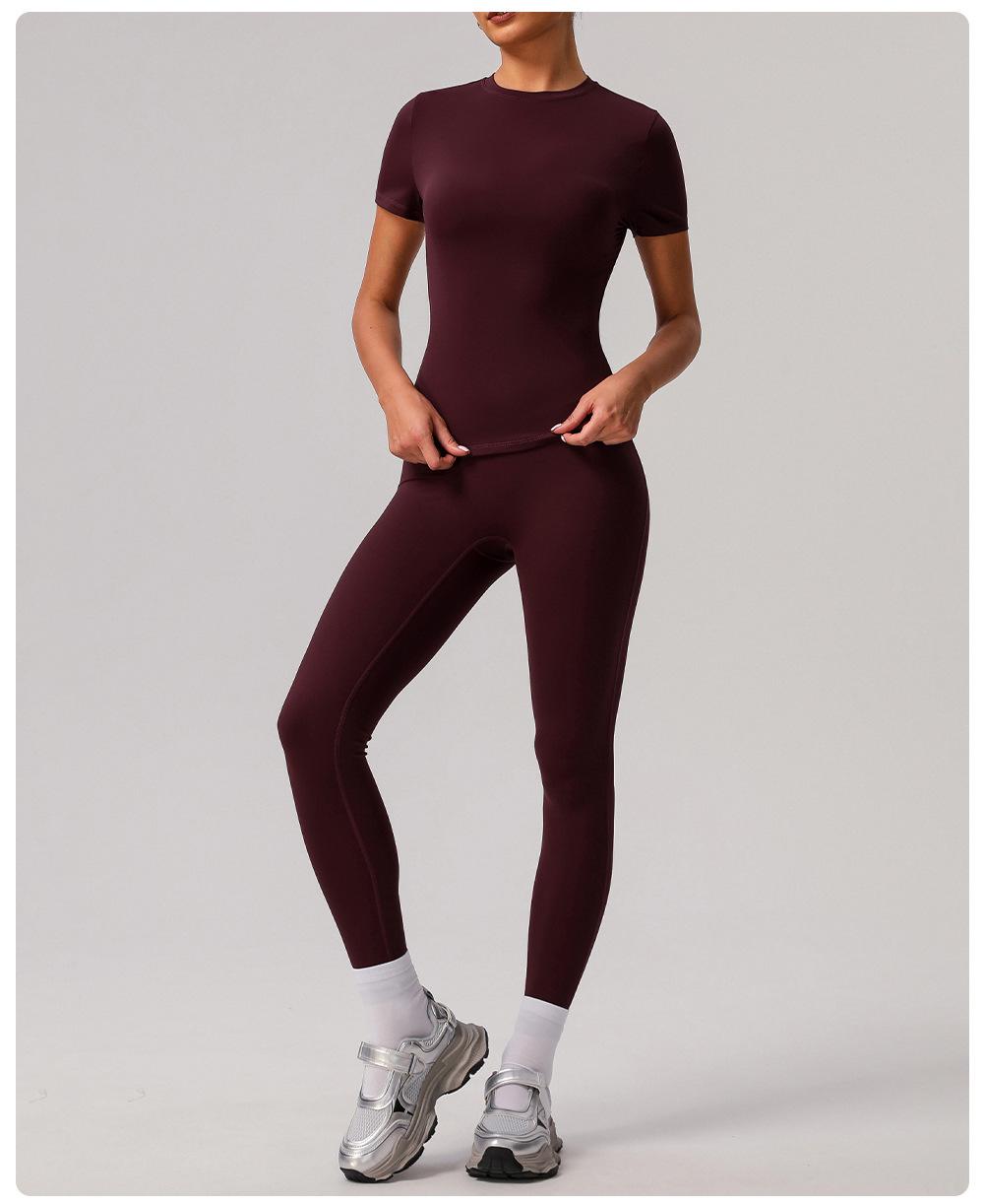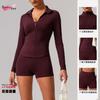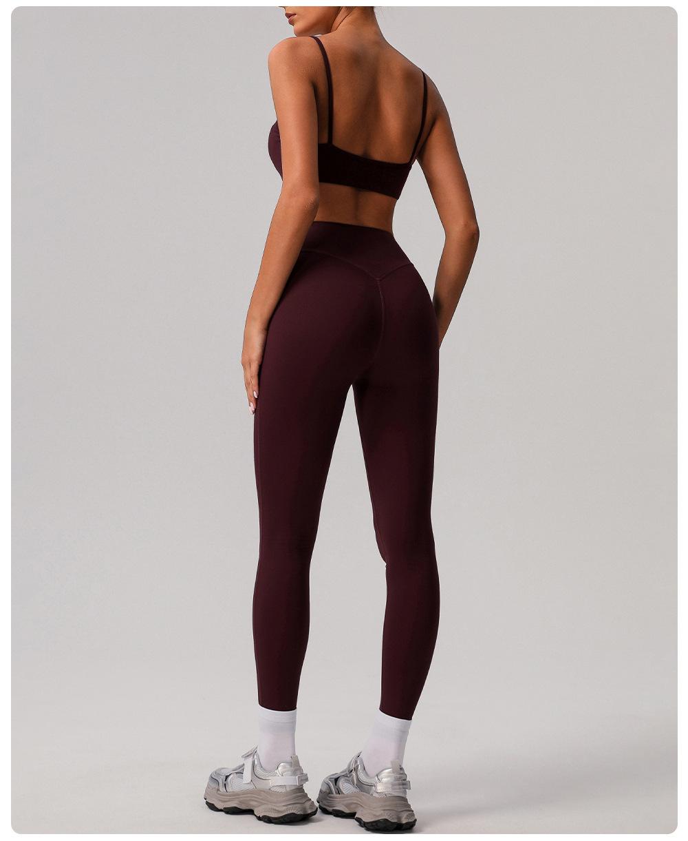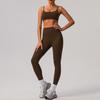 Europeu e americano cor sólida apertado nu yoga terno alta elasticidade respirável fitness roupas ao ar livre corpo moldar correndo terno esportivo feminino