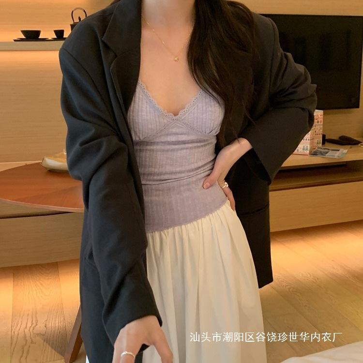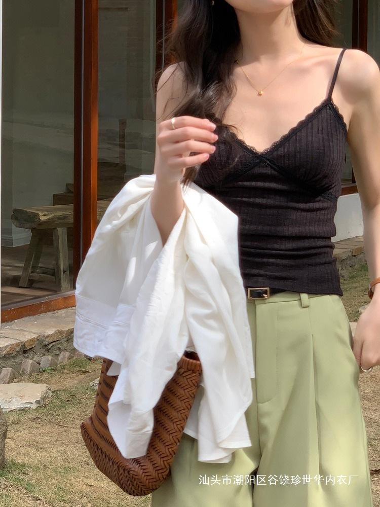 Colete de renda com bojo no peito, roupa externa emagrecedora para mulheres, costas bonitas, estilo francês, estilo Pure Desire, base top 6833