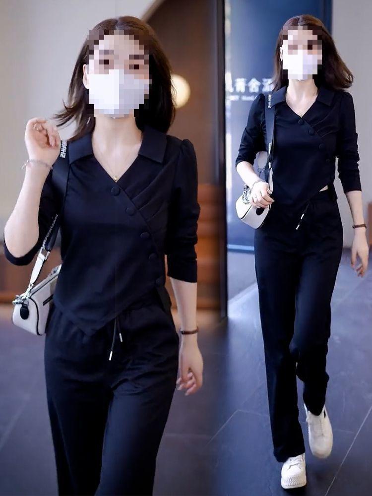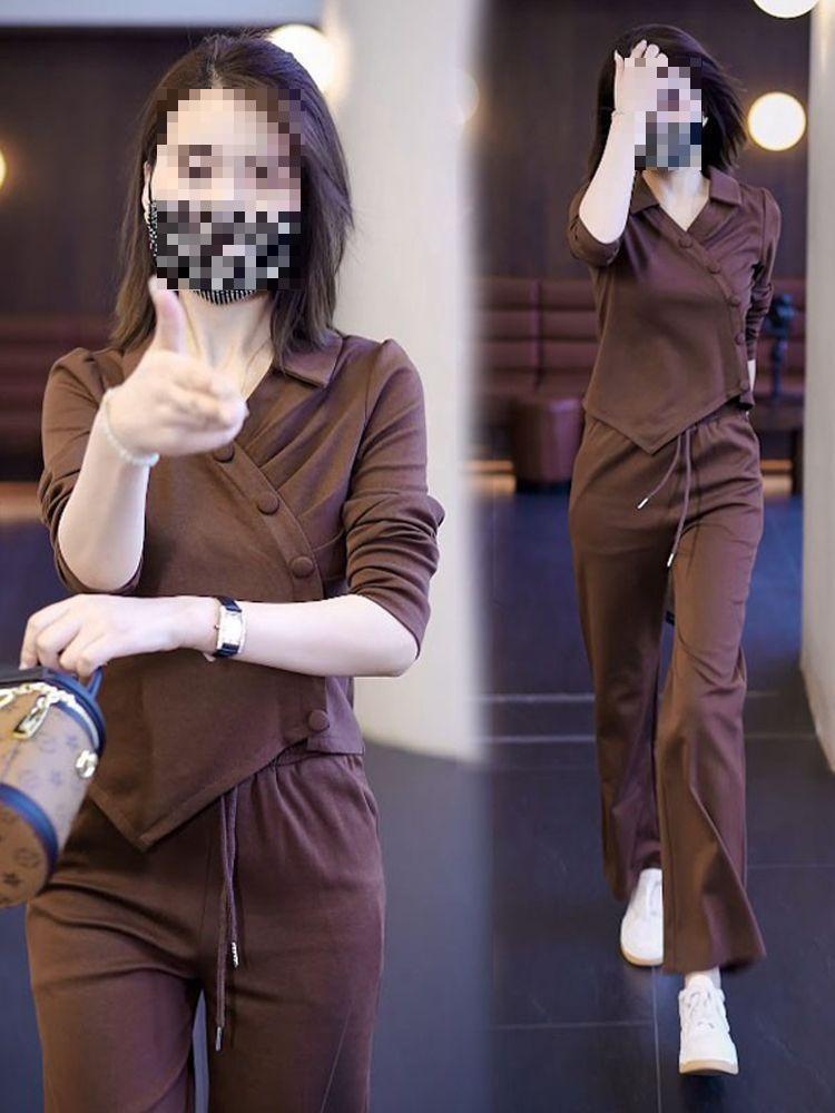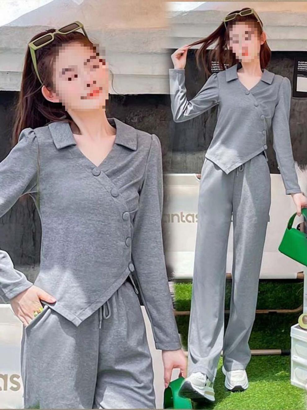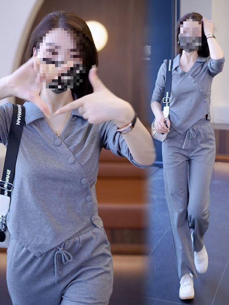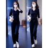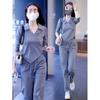 Terno esportivo casual transfronteiriço feminino 2024 nova moda primavera e outono estilo ocidental moletom solto calças retas tendência