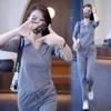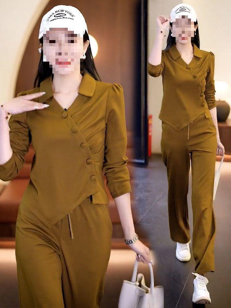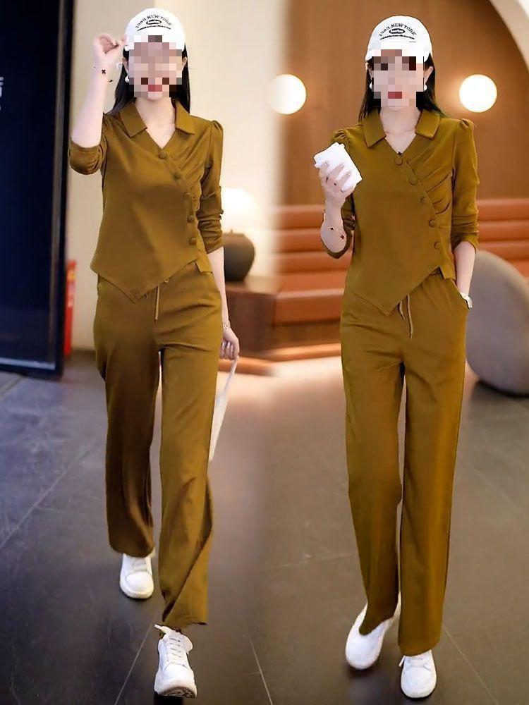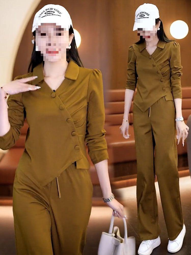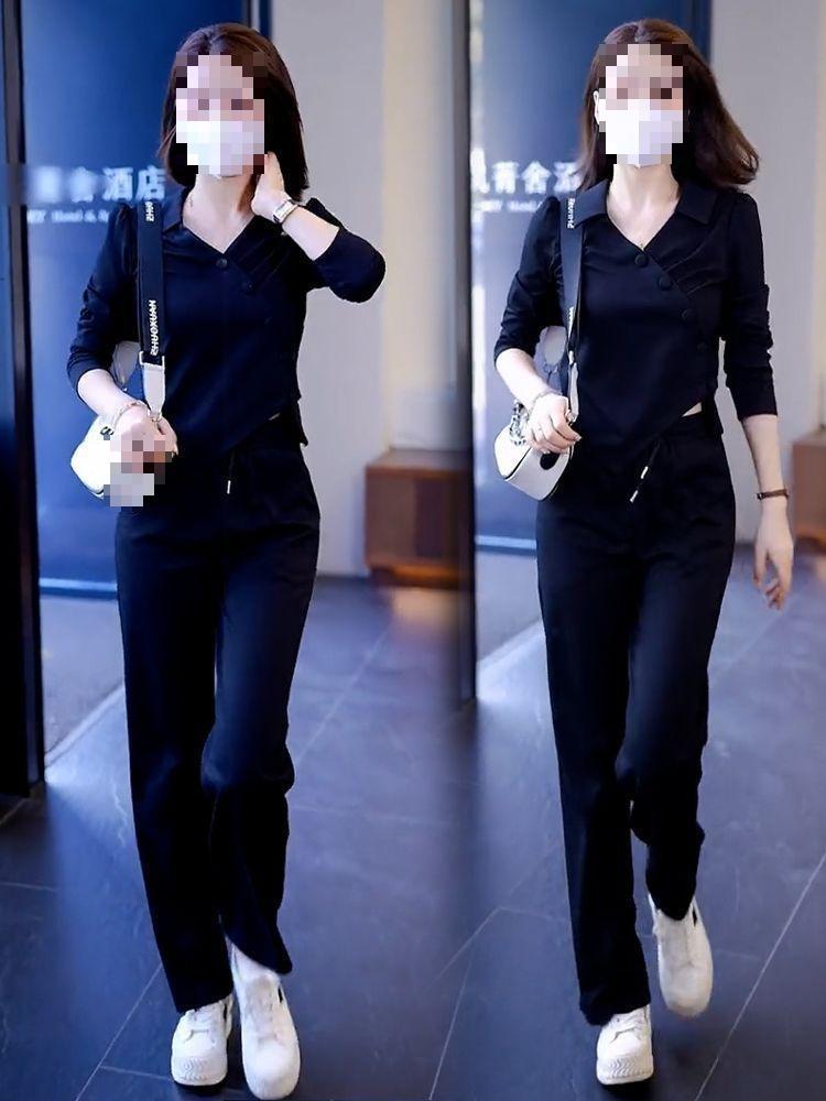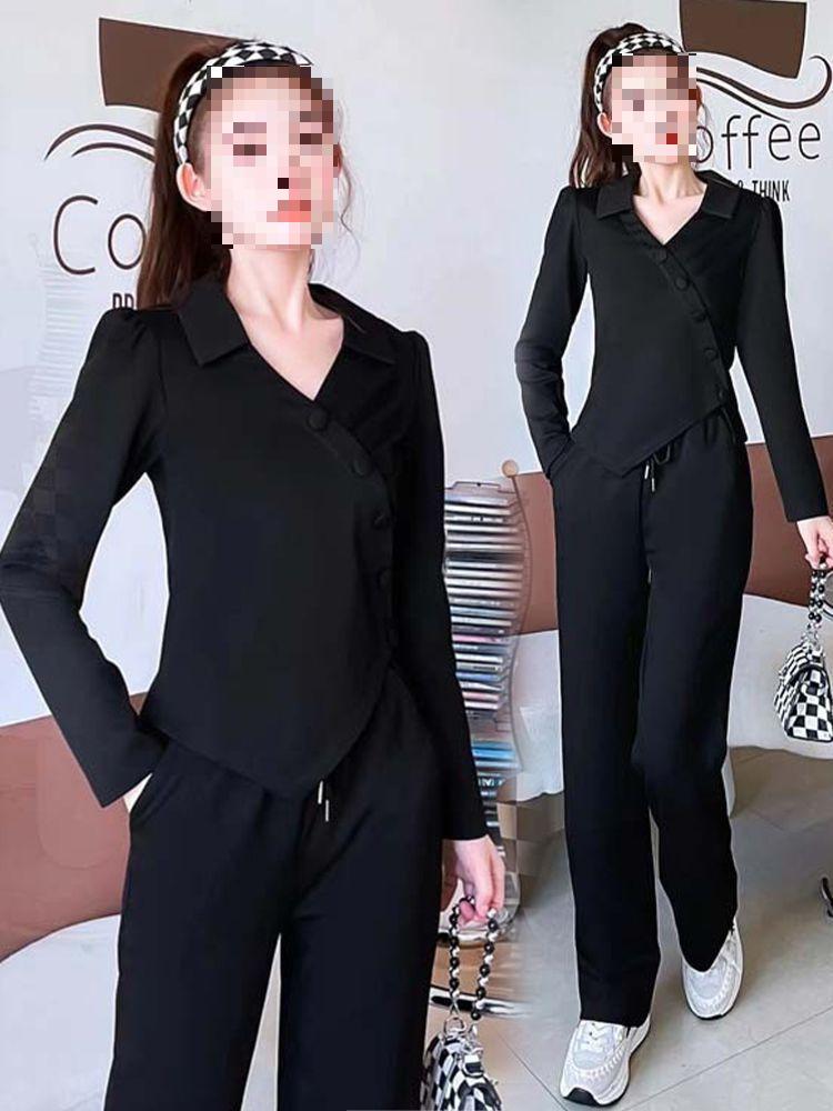 Terno esportivo casual transfronteiriço feminino 2024 nova moda primavera e outono estilo ocidental moletom solto calças retas tendência