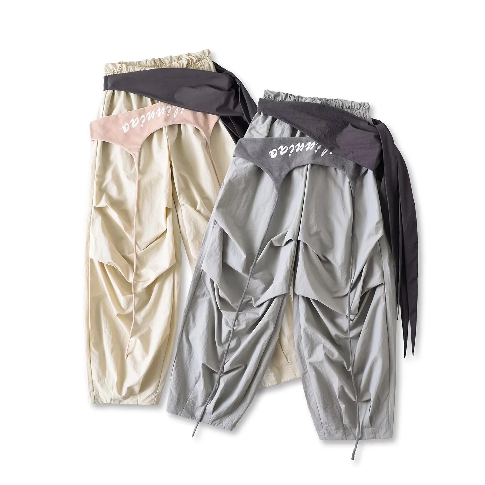 Primavera 2025 Nova Chegada Americana Colorida Hot Girl Crane Calças Calças Cintura Alça Moda Rua Casual Calças Guarda-chuva