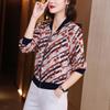 Chiffon impresso terno de beisebol casaco curto feminino 2025 novo verão casual solto jaqueta plus size proteção solar
