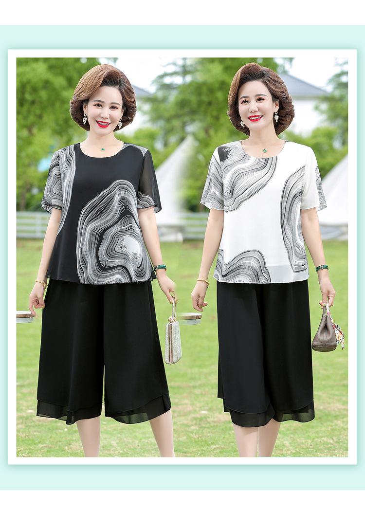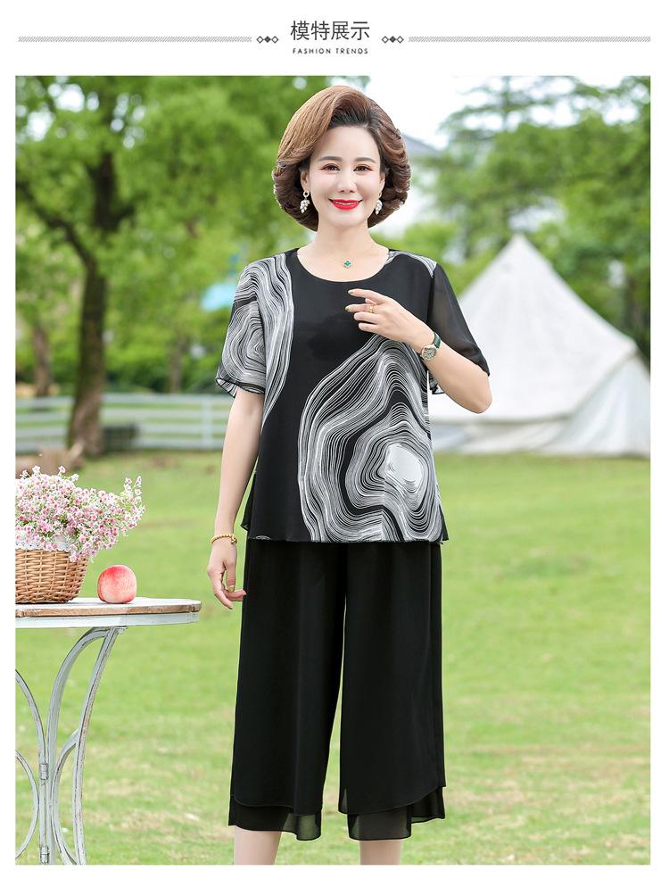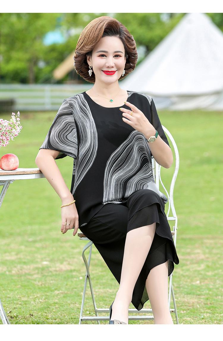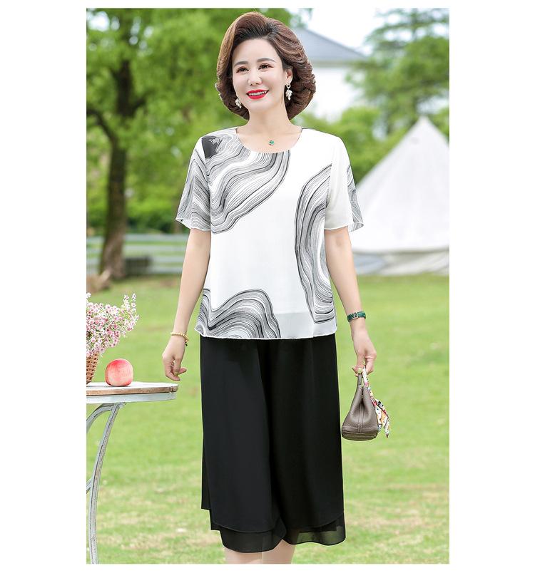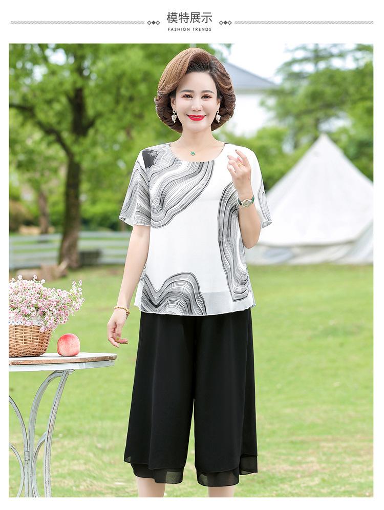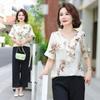 Dia das Mães Camisa de chiffon de manga curta para o verão de meia-idade, terno estiloso 2023, novas roupas femininas de meia-idade e idosas