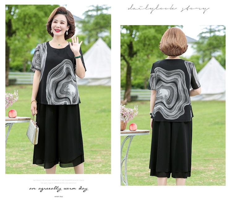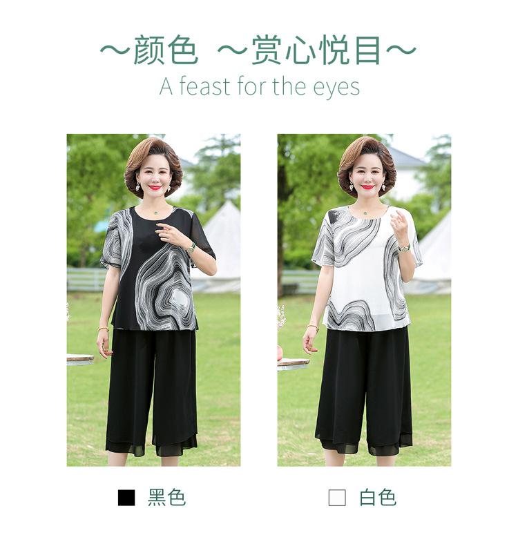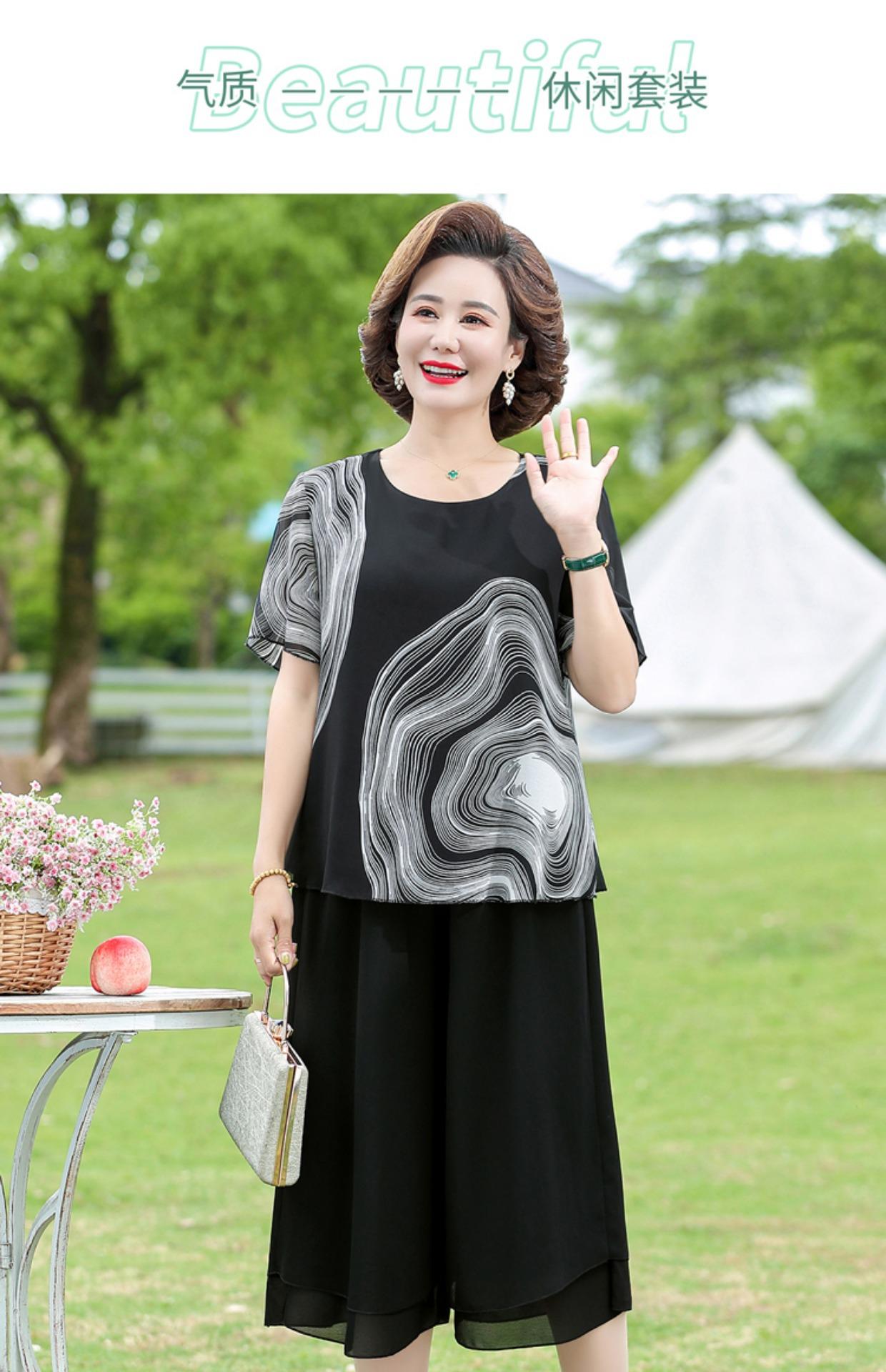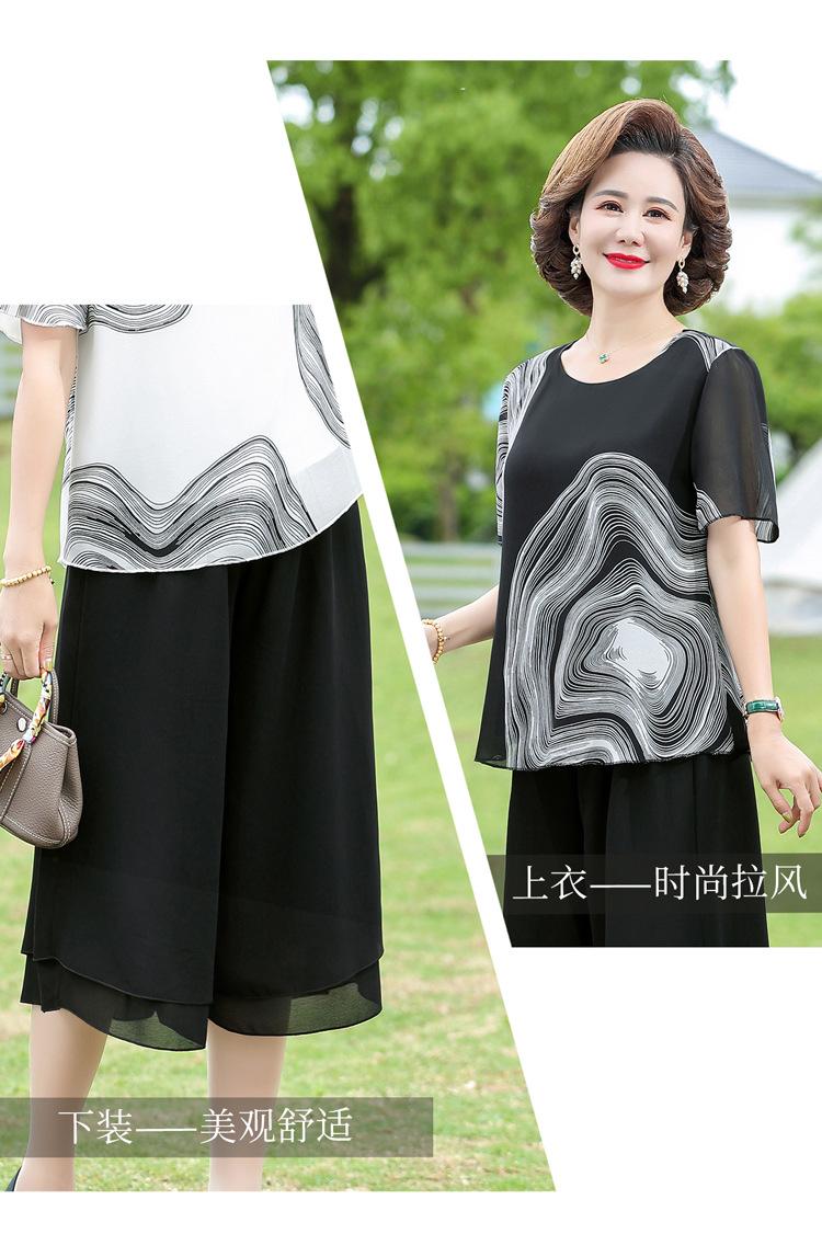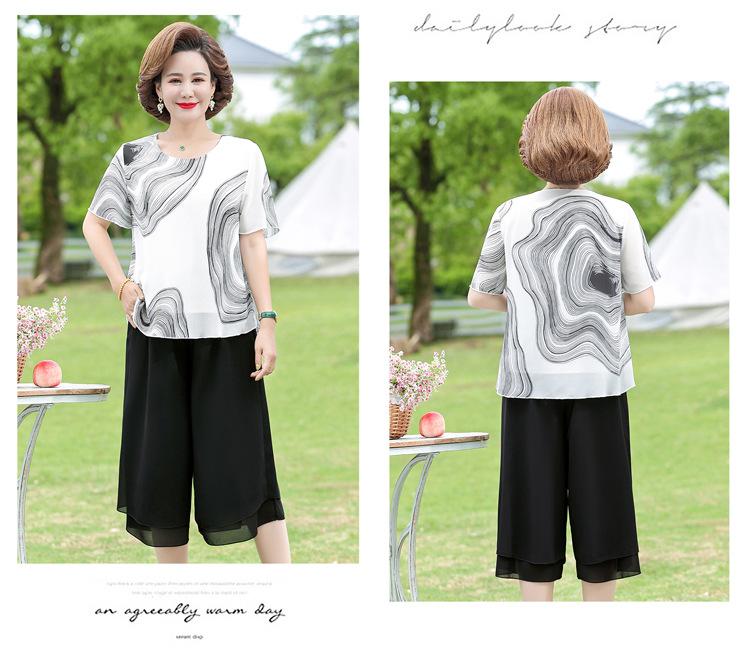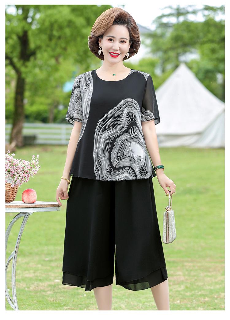 Dia das Mães Camisa de chiffon de manga curta para o verão de meia-idade, terno estiloso 2023, novas roupas femininas de meia-idade e idosas