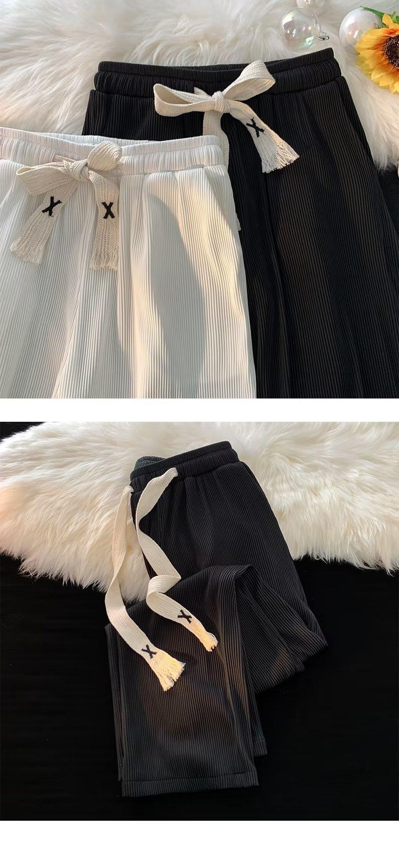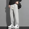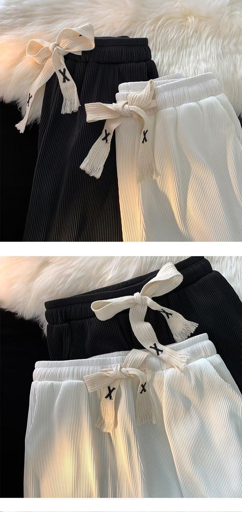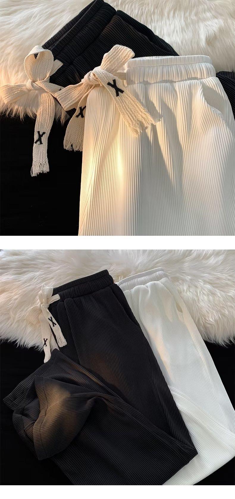 Calças largas com cordão simples para homens e mulheres, primavera e verão, dosagem reta, cor sólida, calças esportivas casuais, calças pretas casuais de moletom