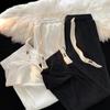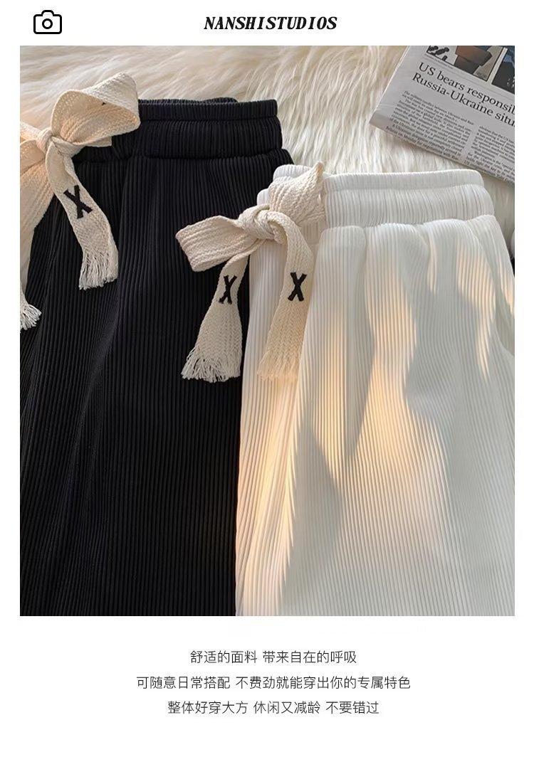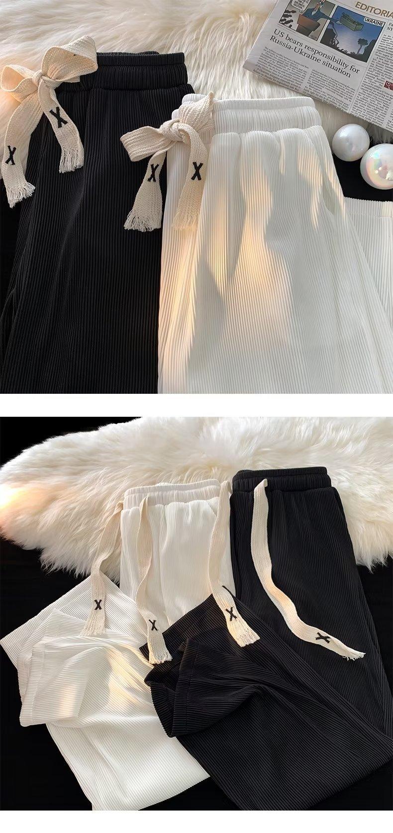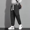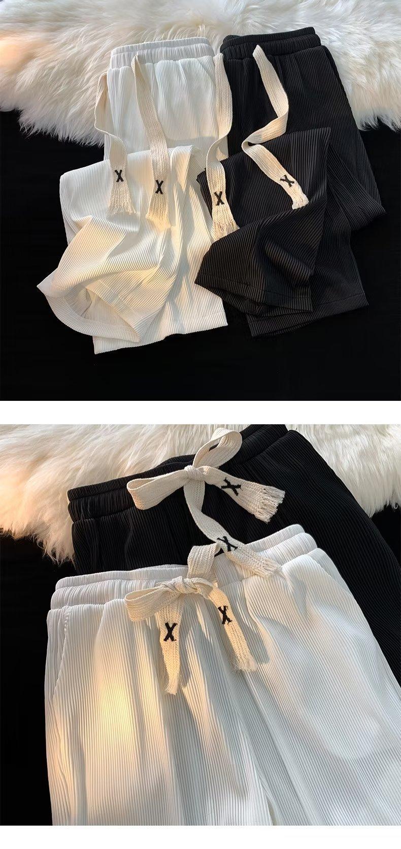 Calças largas com cordão simples para homens e mulheres, primavera e verão, dosagem reta, cor sólida, calças esportivas casuais, calças pretas casuais de moletom