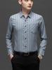 Primavera e Outono Algodão Linho Camisa de Manga Comprida Camisa de Linho Casual Solta Masculina Listrada Real Bolso plus size Roupas de Pai