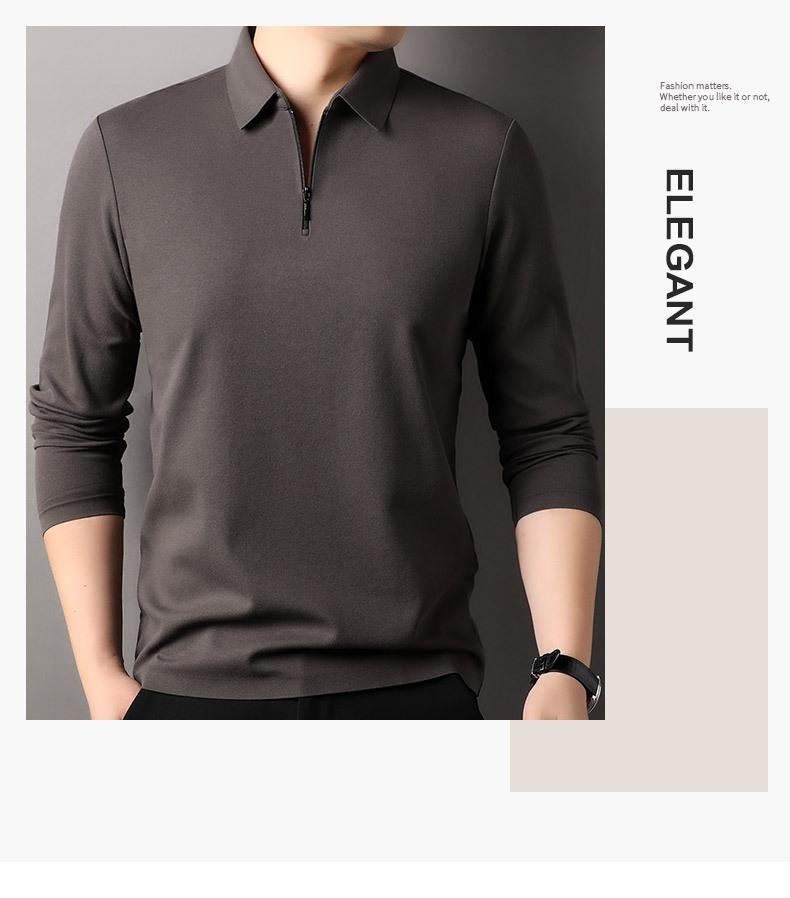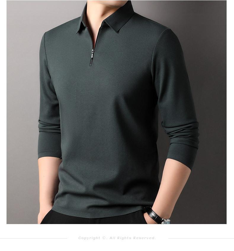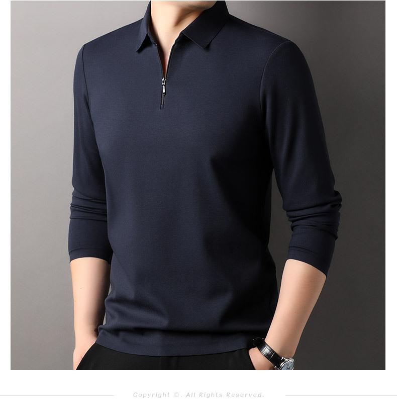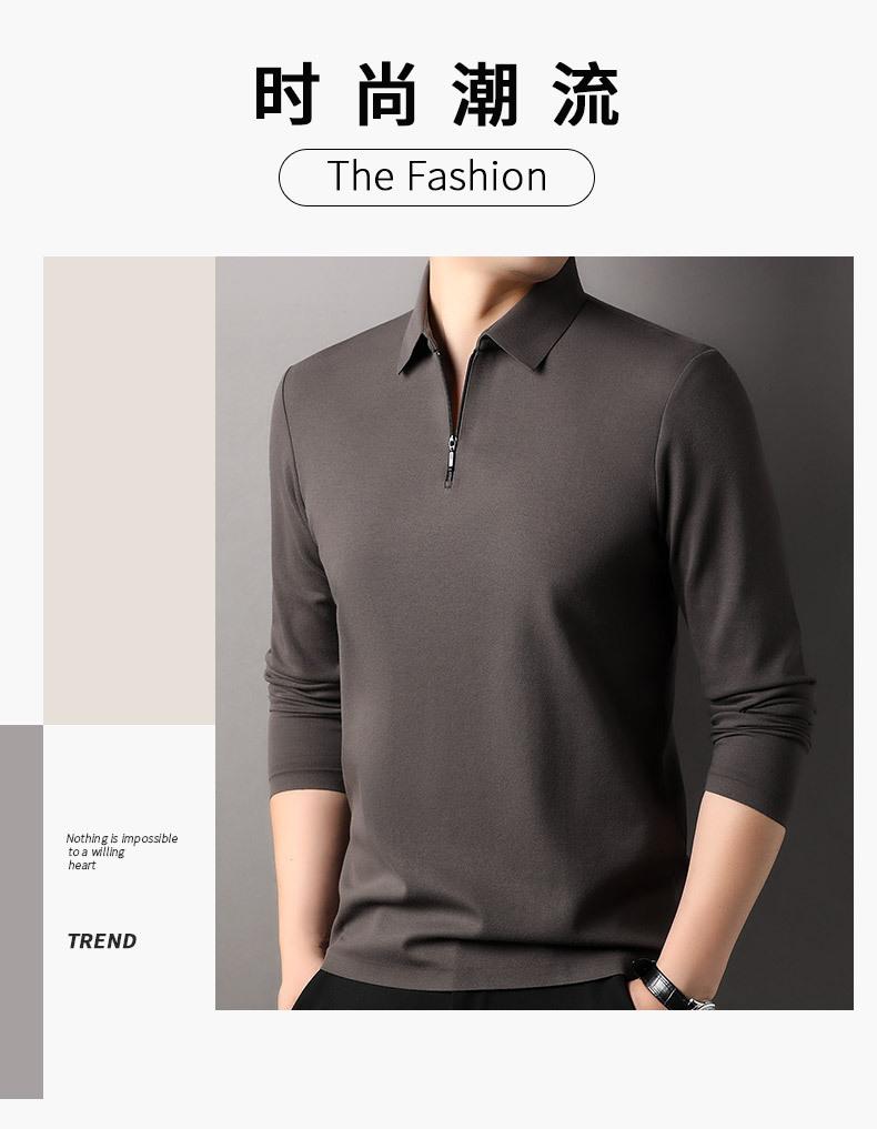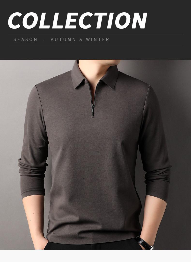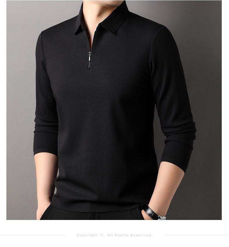 Compre Camiseta casual leve de manga comprida com mistura de lã e seda Mulberry Camiseta polo masculina de meia-idade com zíper e fecho de correr para primavera e outono no atacado no Joom.pro