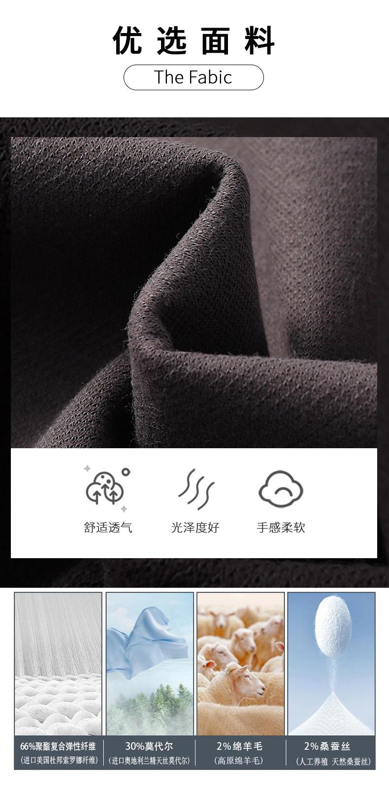 66% polyester 30% modal 2% wool 2% mulberry silk