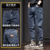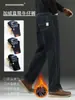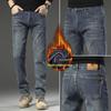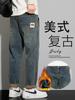 Calça Jeans Grossa Forrada com Lã Outono e Inverno Masculina Retro Velha Bordada Pequena Calça Reta Estilo Americano Calça Casual de Marca da Moda