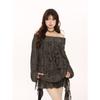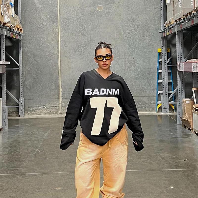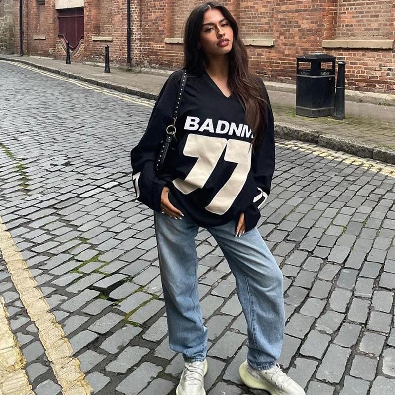 Terno de baile retrô americano, pulôver solto, moletom da moda de rua, estampa de letras, blusa solta de manga comprida feminina, transfronteiriça, europeia e americana