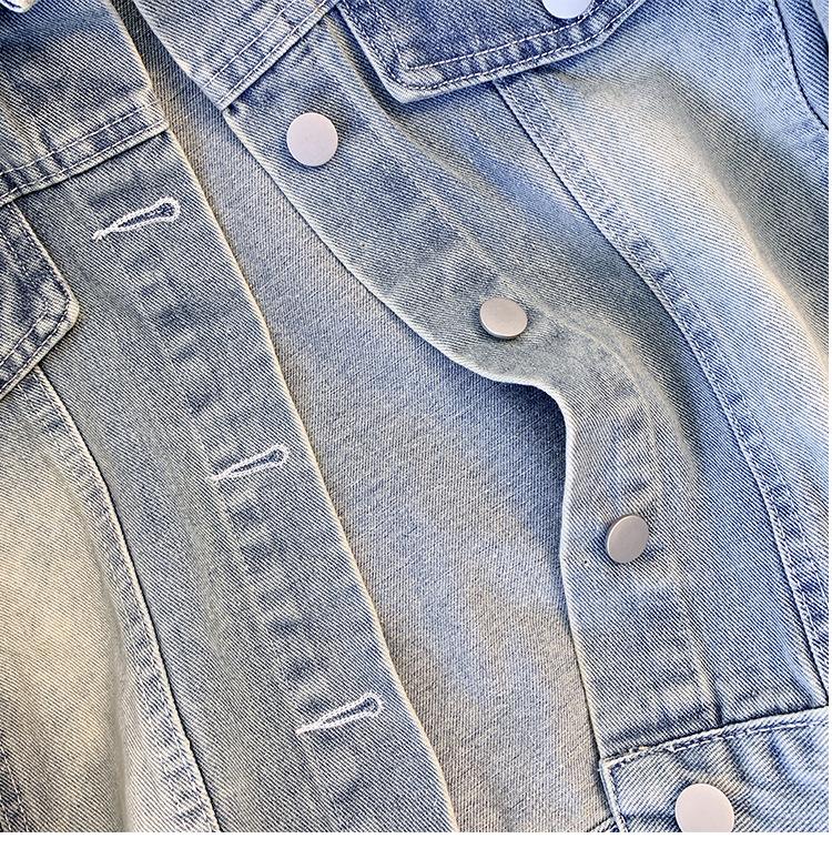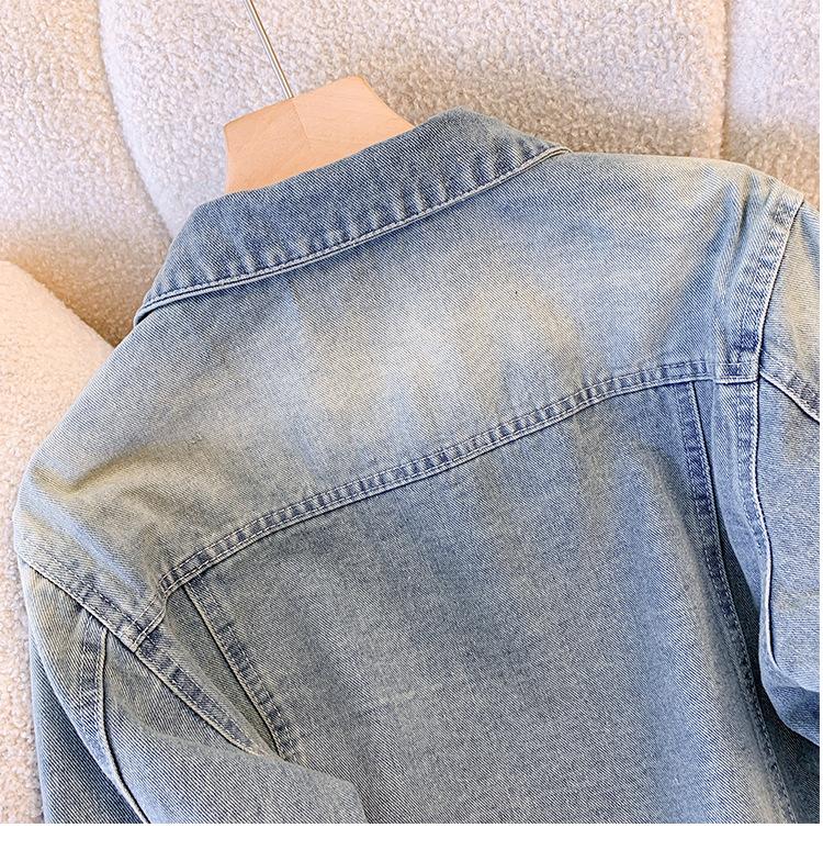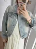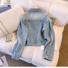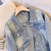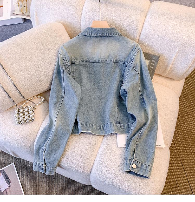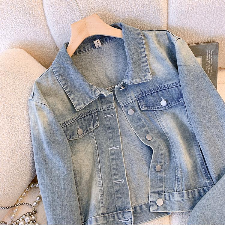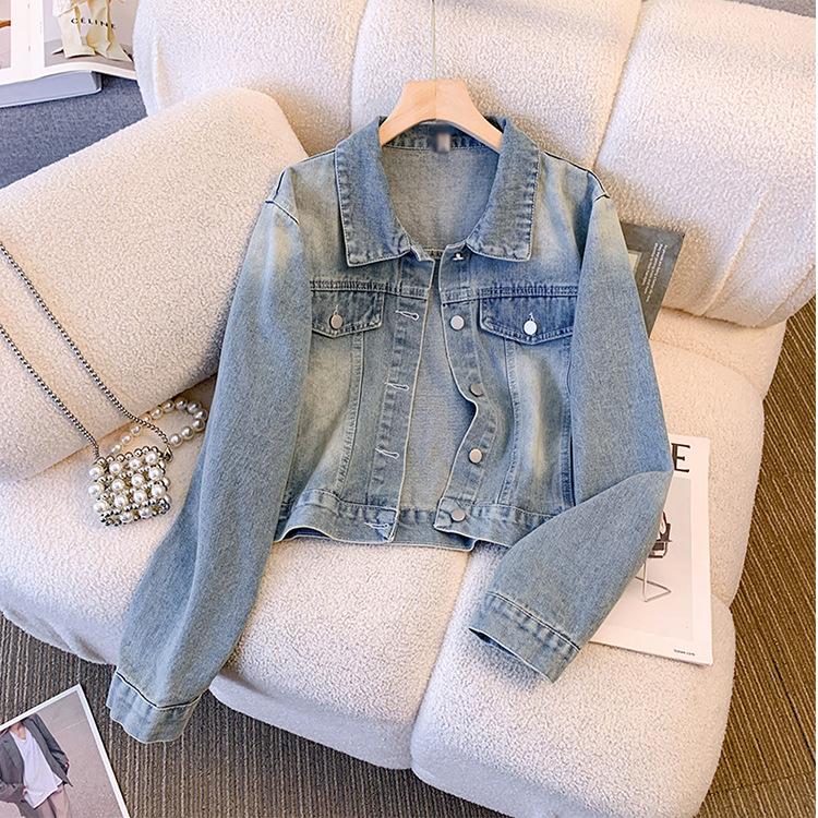 Jaqueta jeans vintage lavada feminina primavera e outono nova jaqueta solta estilo Hong Kong emagrecedora top curto