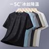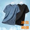 Camiseta de manga curta masculina verão fina respirável malha de sensação fresca gola redonda camiseta masculina verão esportes roupas de secagem rápida