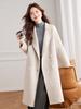 Casaco de lã dupla face para mulheres no outono e inverno, novo casaco de lã espessado, comprimento médio, trespassado, He8807