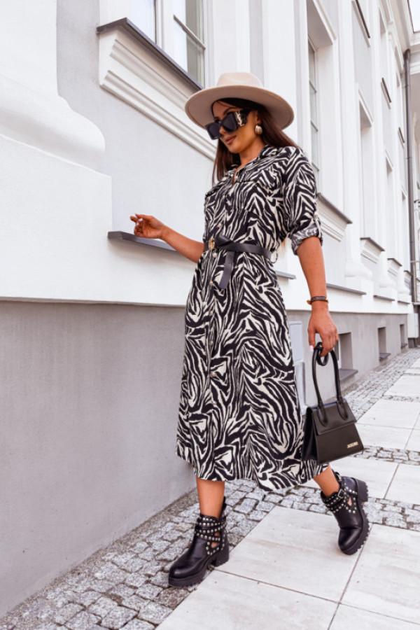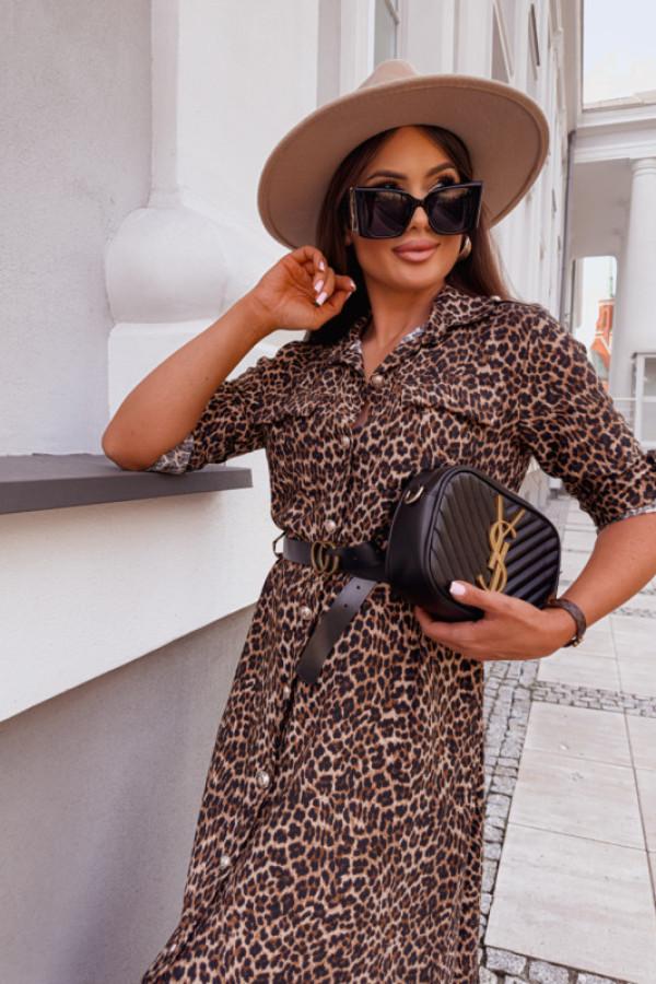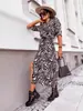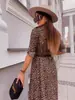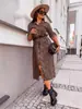 Outono 2024 Amazon comércio exterior transfronteiriço novo leopardo fivela manga longa camisa estampada vestido