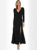 2024 Vestido de Noite Europeu e Americano Novo Transfronteiriço Decote em V Apertado Pregas Laterais e Fenda Lateral Vestido de Manga Comprida Vestido Feminino