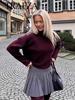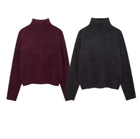 Ins Transfronteiriço Outono Mulher Popular Estilo Europeu e Americano Moda Feminina Gola Alta Manga Longa Tricô Básico Macio